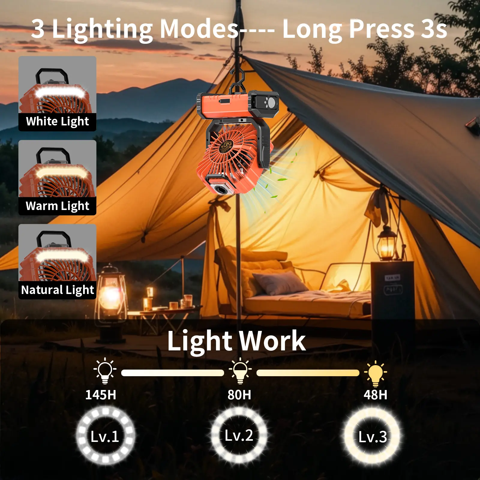 ·【Summer Gift】This camping fan is designed to perfectly blend with every occasion. On hot days, this is a great summer gift. Enjoy the cool summer anytime, anywhere.
