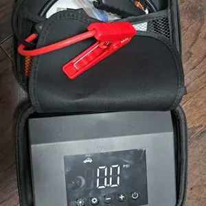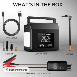 ·【WHAT YOU GET】 1 x Smart Air Pump, 1 x Air Tube(60cm/23.6in), 1 x Inflating Needle, 1 x Inflatable Nozzle, 1 x Pesta Valve, 1 x Emergency Start Power Clip, 1 x Type C Cable, 1 x User Manual. 18 months warranty and lifetime tech support. If you have any after-sales questions about jump starter, please feel free to contact us.Note: Please do not use the air pump function continuously over 6 minutes. When the tire battery compressor is seriously hot, please cool down for a few minutes before continuing to inflate the tire.