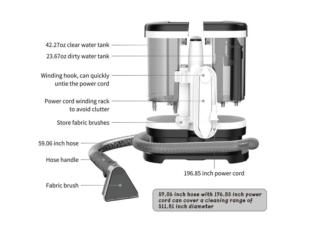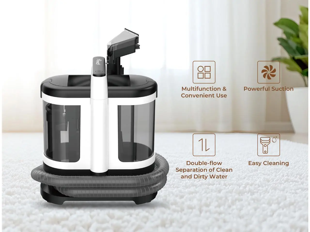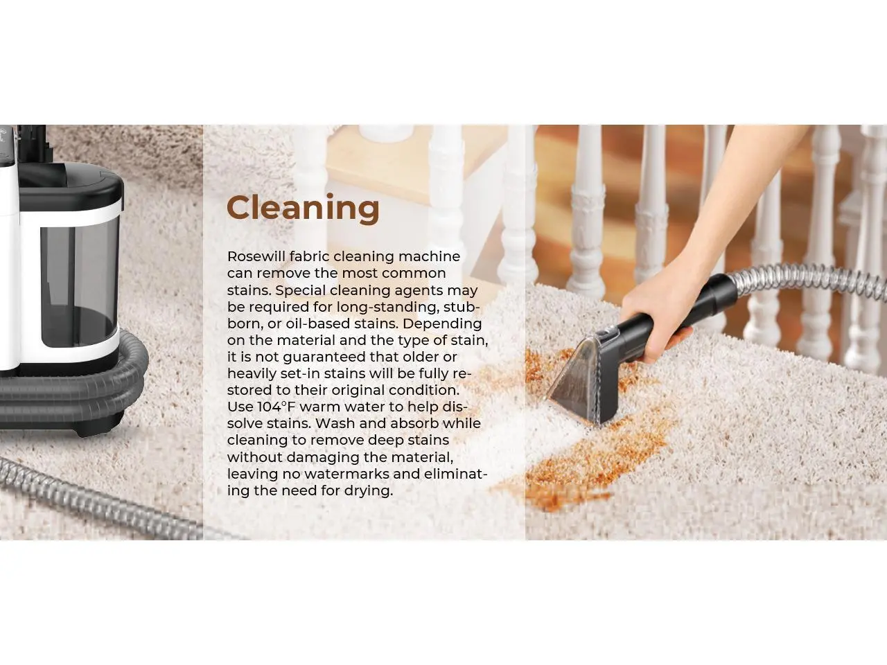 ·No need to manually mix cleaning solutions, easily removing suborn stains. Equipped with self-cleaning joints and a washable hose, it keeps your hands clean and odor-free. Visual dual water tanks separate clean and dirty water. With circulating water, the more you wash, the cleaner it gets. The large-capacity water tank is easy to disassemble and clean, perfect for large households. Lightweight design: smaller, lighter, and easy to store.