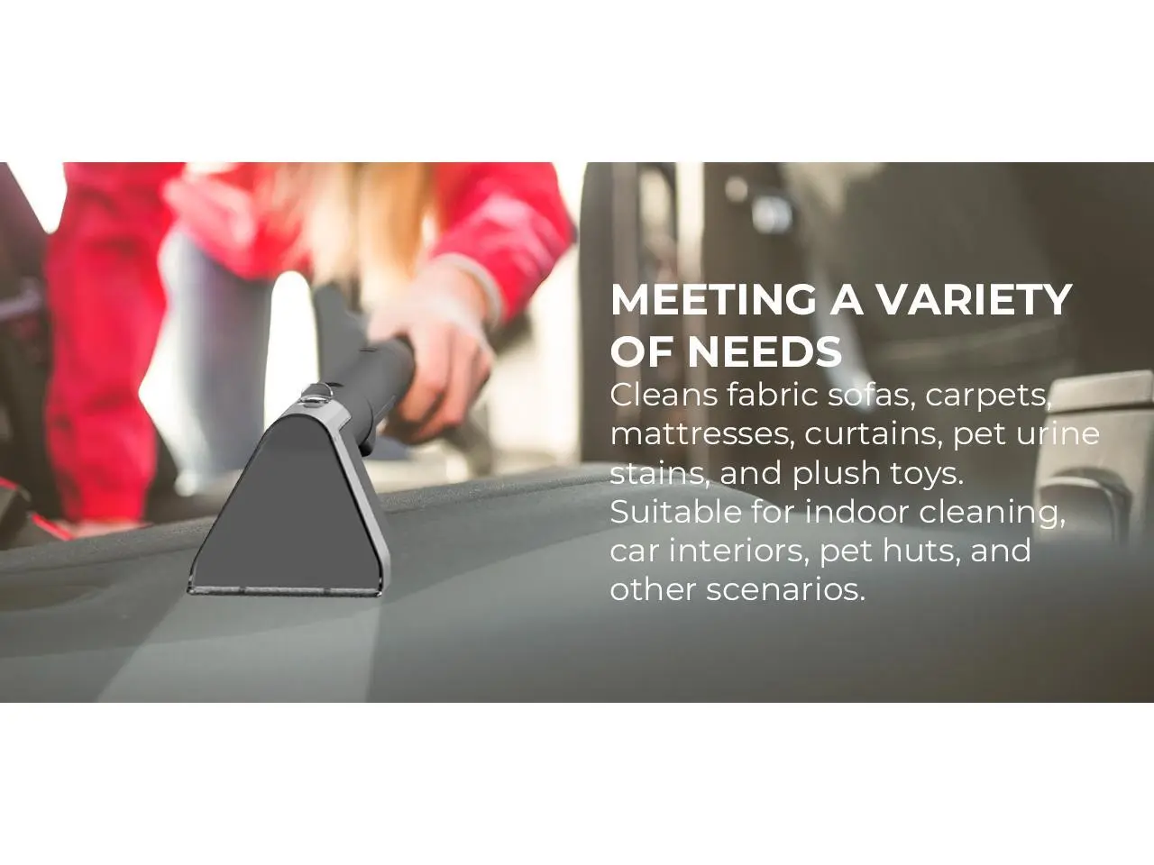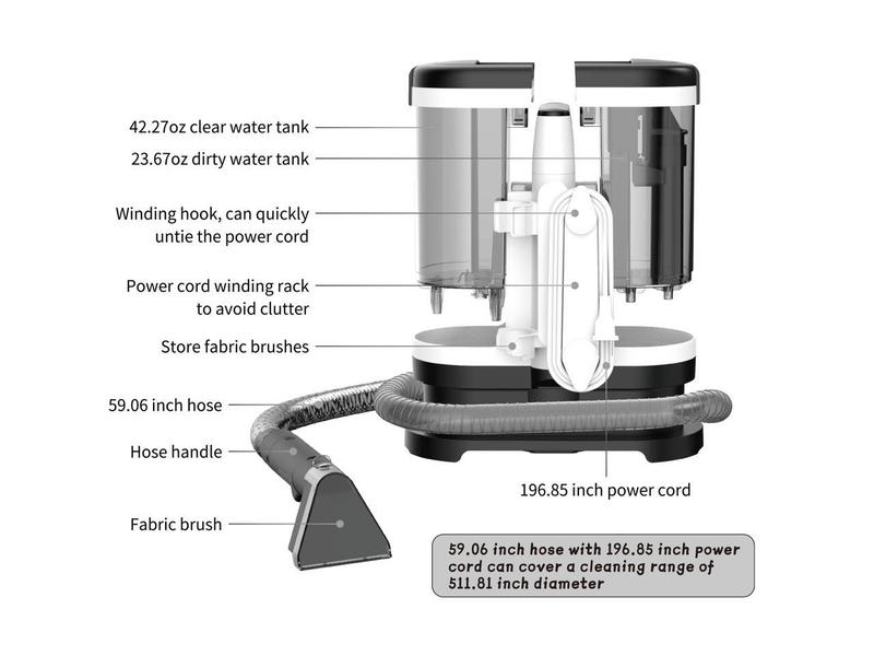 ·Cleans Fabric sofas, carpets, mattresses, curtains, pet urine stains, and plush toys, meeting a variety of needs. Suitable for indoor cleaning, car interiors, pet huts, and other scenarios