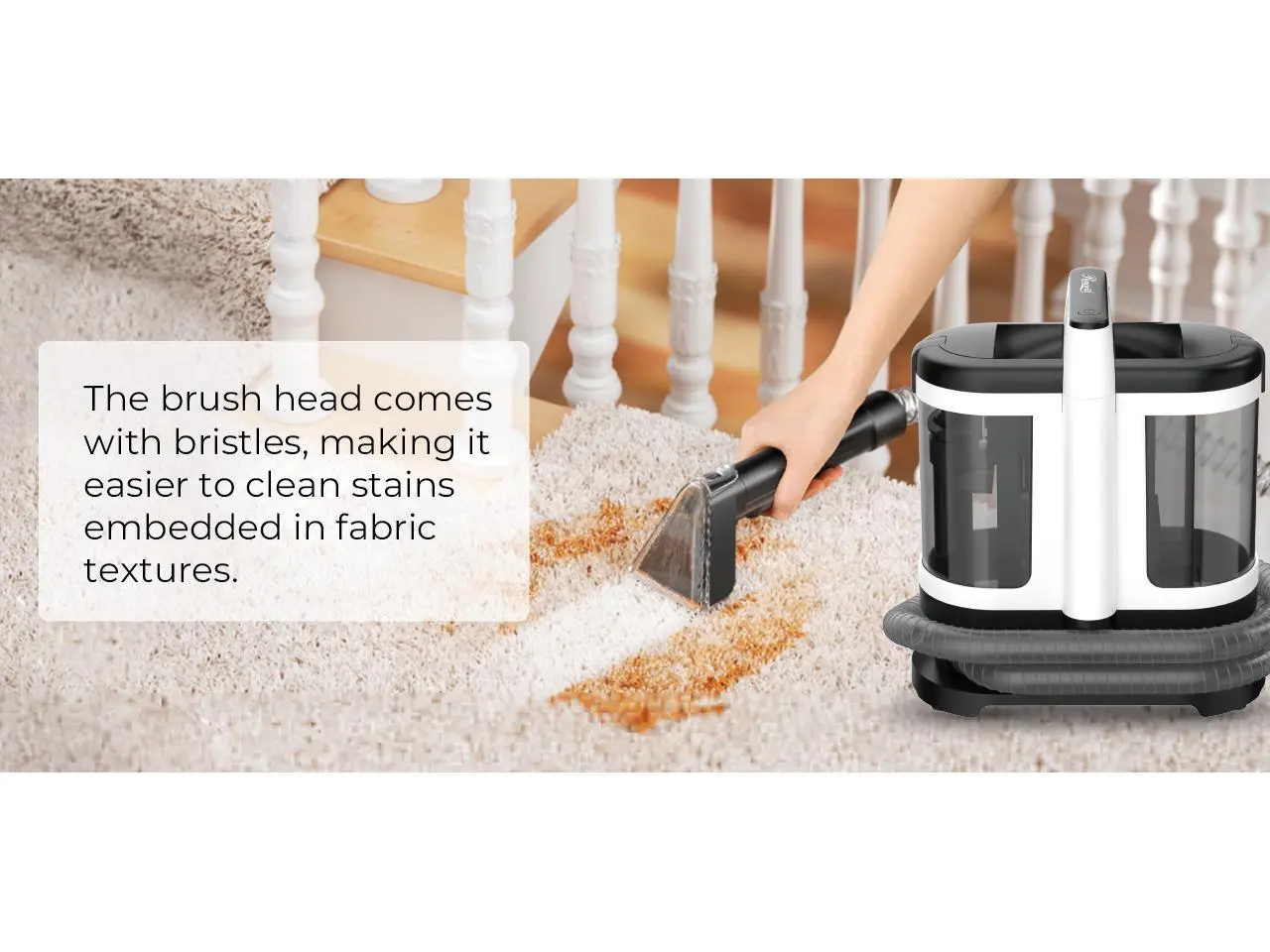·The brush head comes with bristles, making it easier to clean stains embedded in fabric textures.