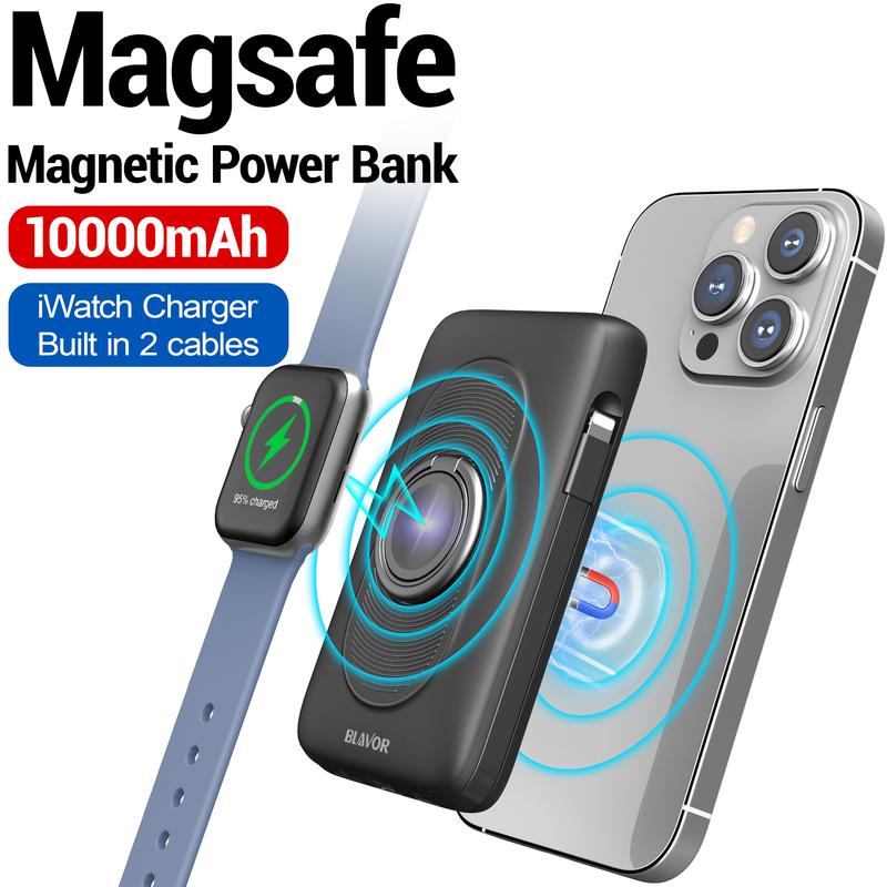 Our power bank tackles issues with wireless charging, including overheating and slow charging conversion. Equipped with a USB-C cable and an iOS cable, it automatically switches to the best charging mode upon connection, ensuring a safe and efficient charging environment. Bid farewell to slow charging or overheating concerns that might affect your user experience. Specifically designed for a Magnetic portable charger and compatible with Apple Watch Series 9/8/7/6/SE/5/4, serving not only as a magnetic portable charger for cell phone but also as an portable charger for apple watch.
