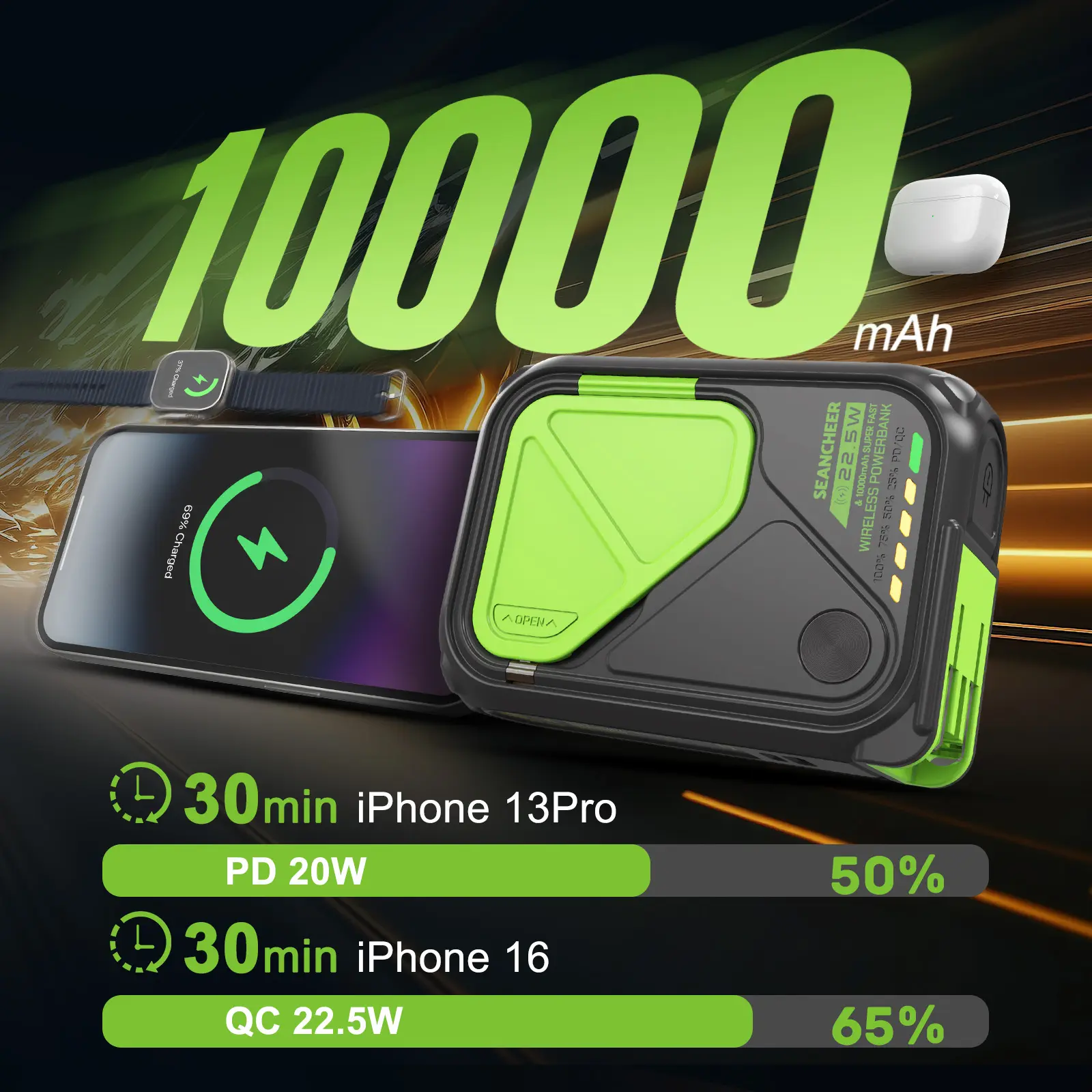 ·【Fast & Efficient Charging】Never worry about running out of power! Powered by a 10,000mAh battery, our cell phone portable power bank supports fast charging up to 22.5W. It quickly recharges your phone to about 65% in just 30 minutes, and the power bank itself is fully recharged within 2-3 hours. Stay charged and ready all day long.