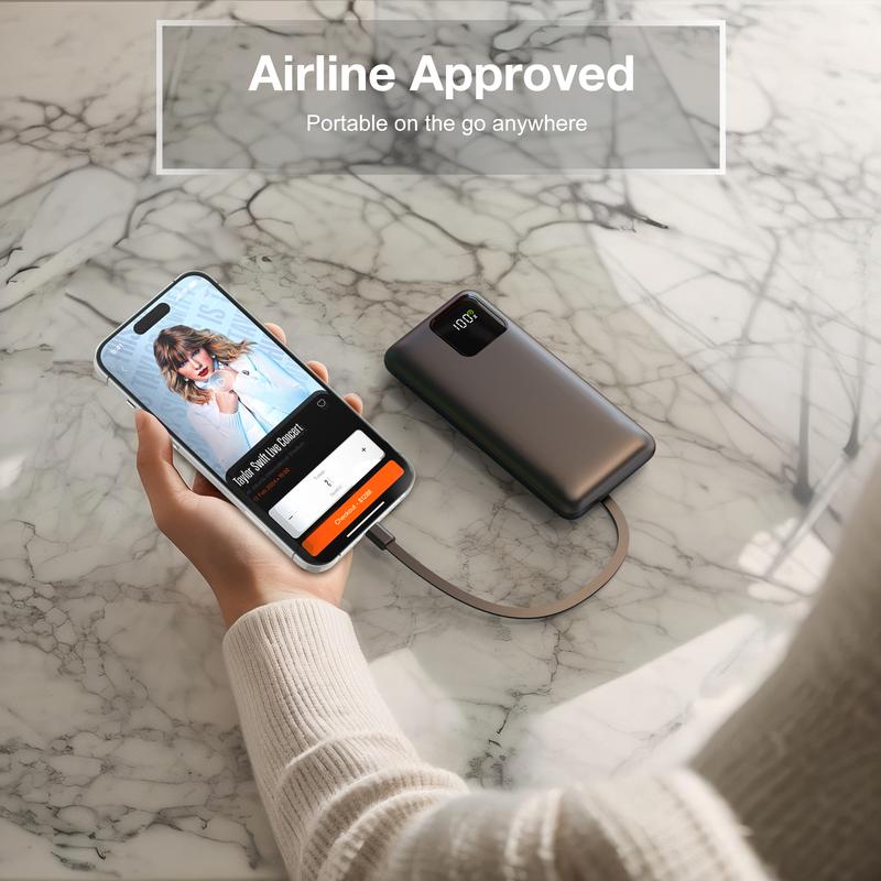 ·Ultra-Slim Design: At just 5.7'' x 2.68'' x 0.72'' and weighing only 0.52 lb, this power bank is as portable as a lighter. The compact design makes it easy to carry and ideal for travel.