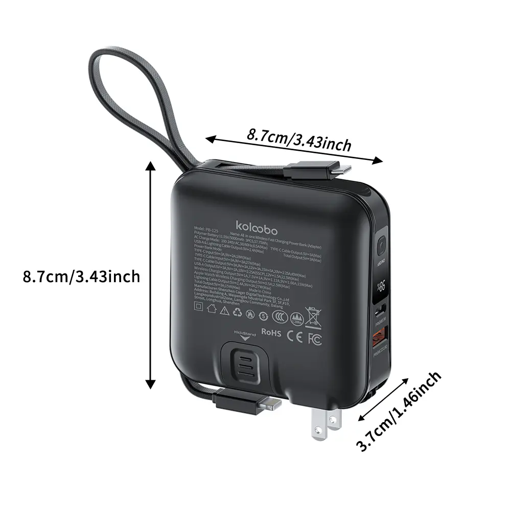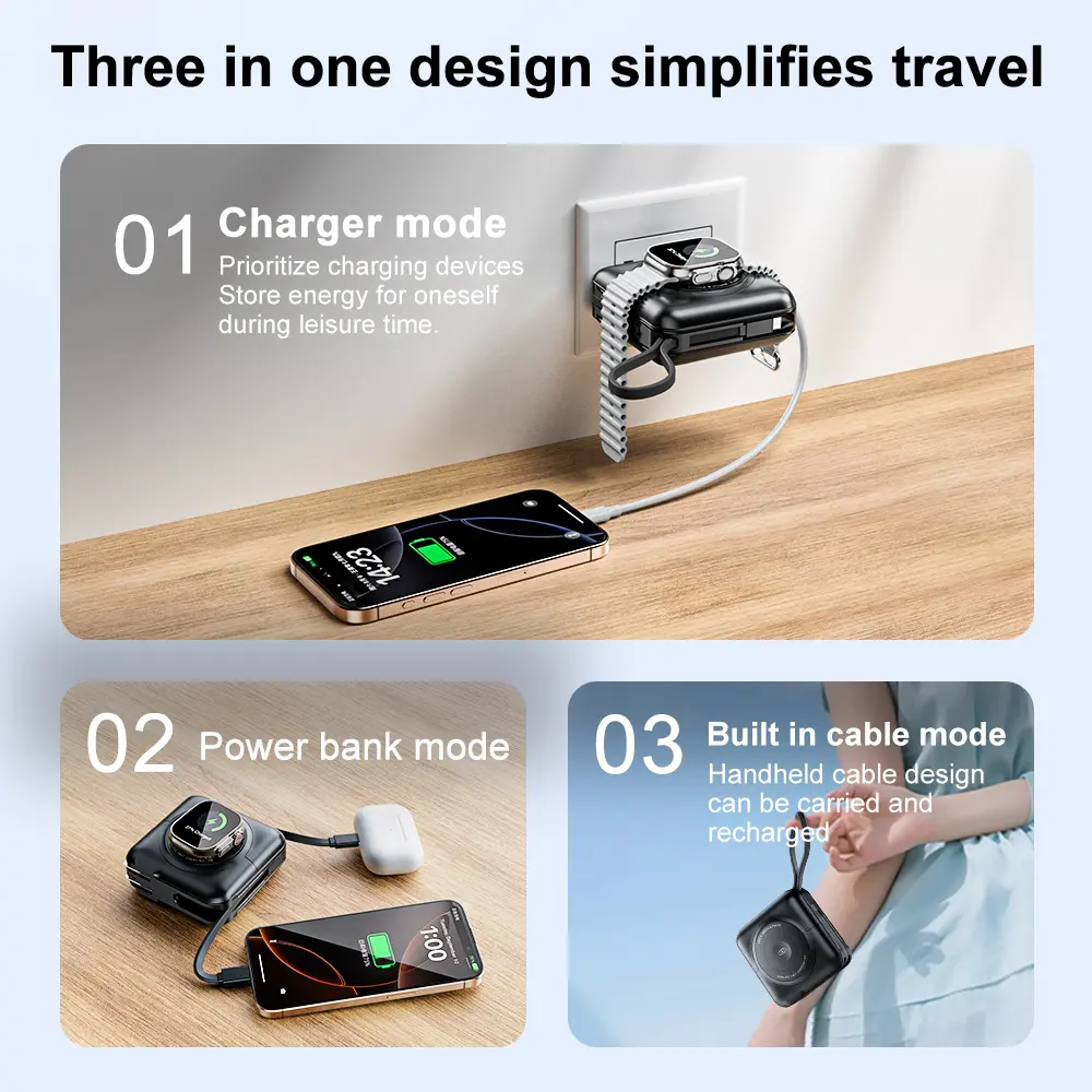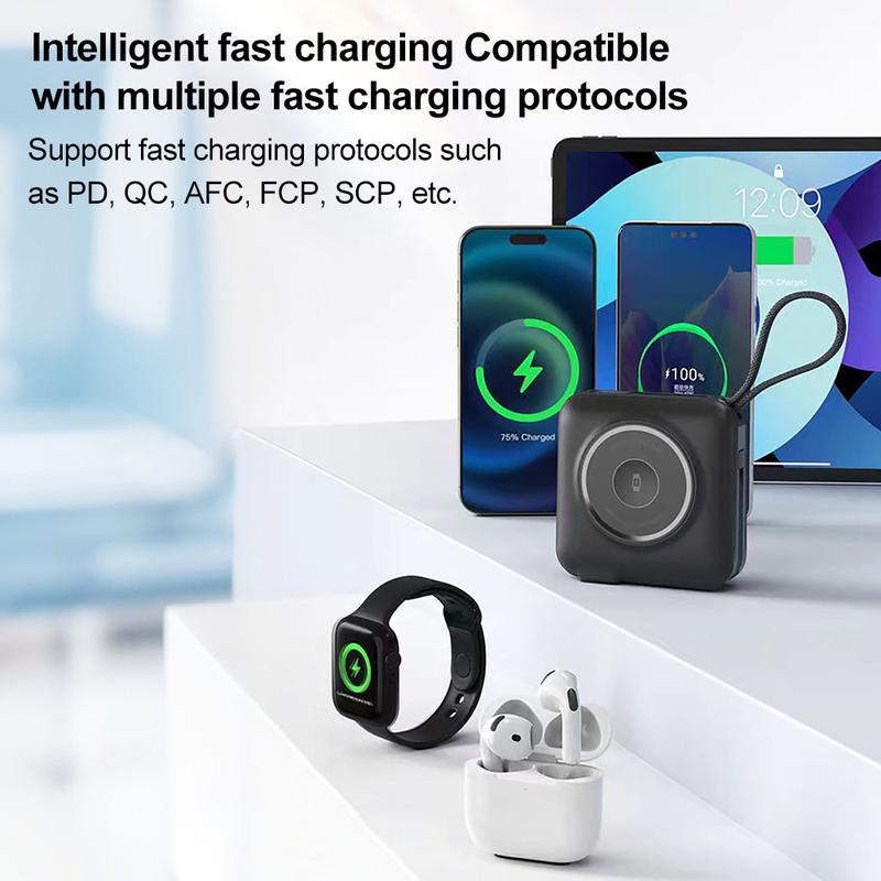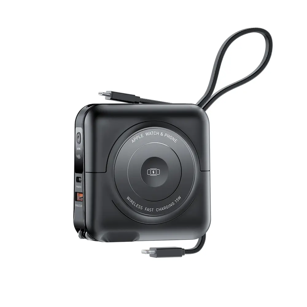 Equipped with a 15A capacity battery, this power bank provides ample power for your devices. It's versatile and can be used as a charging solution for various gadgets. The charger's design ensures compatibility with magnetic iWatch chargers, enhancing its functionality.