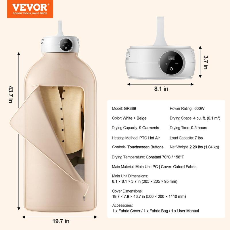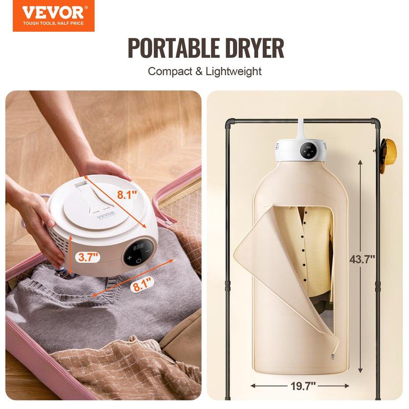5. VEVOR Portable Clothes Dryer, Clothes Dryer with Dryer Bag, PTC Heating & LED Display, Foldable Mini Dryer with 5-H Timer for Apartments, Dorms, RVs, or Hotels, 600W, Beige