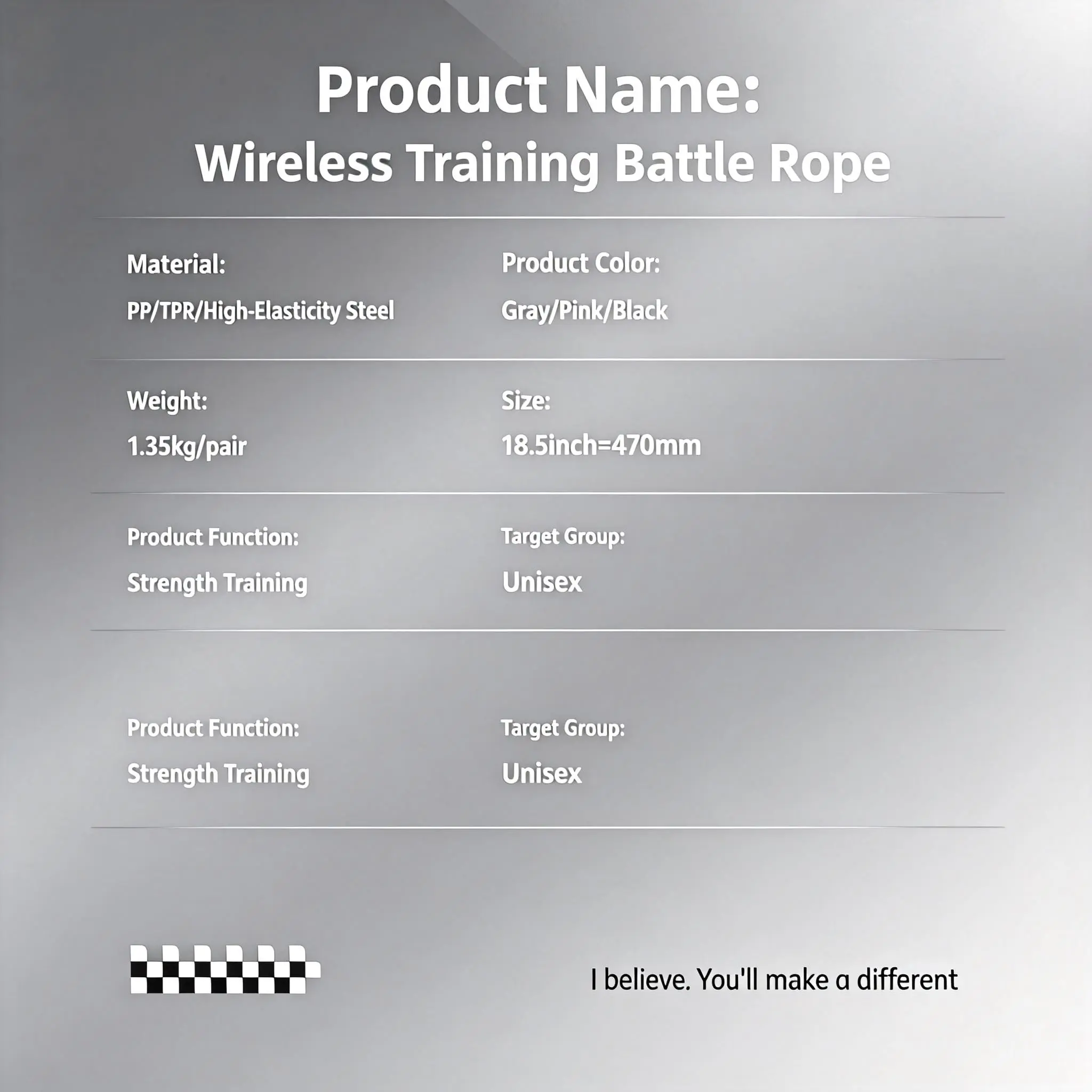 18 inches (47 cm)& 1.5kg ultra-portable cordless battle rope, easy to stow in your gym bag for on-the-go training. Soft silicone base protects floors and walls, ideal for safe workouts in small spaces, apartments, home gyms or outdoors—perfect for busy lifestyles.