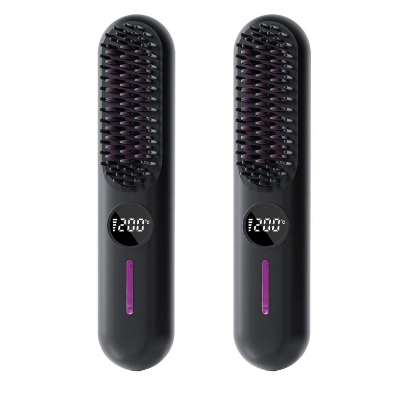 5. Portable Cordless Hair Straightener Brush, 2pcs 2 in 1 Curling & Straightening Hair Iron, USB Rechargeable Hair Iron for Home Office School Or Travel