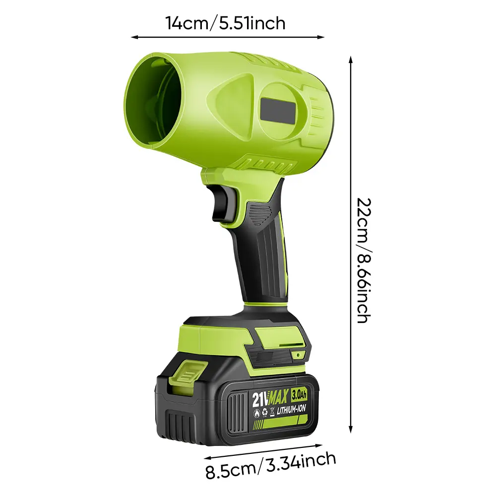 The Saker Cordless Leaf Blower is a portable dust cleaner designed for handheld air duster use. It's perfect for drying patio cleaning tasks. This green product features an adjustable speed setting, enhancing its versatility. Ideal for maintaining outdoor spaces, it offers convenience without compromising on functionality.