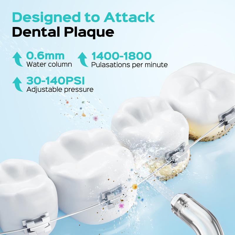 Rated IPX7 for full waterproofing, this water flosser can be rinsed under water and even used safely in the shower. The detachable water tank facilitates thorough cleaning and maintenance, ensuring optimal hygiene. Backed by a 2-year warranty, it provides peace of mind for long-term use.