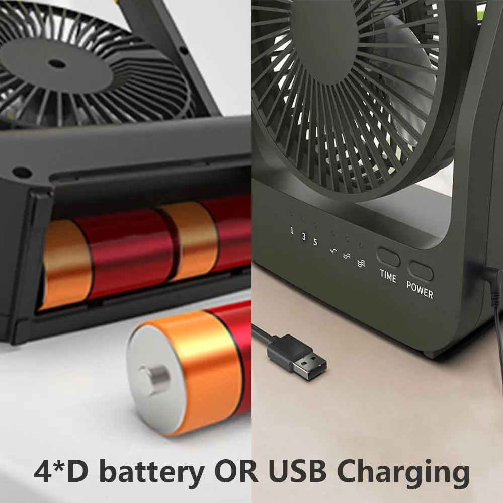 Long Last D- Fan: This fan can run for 214 hours at low speed, 46 hours at medium speed, and 14 hours at high speed. Very suitable for camping, travel, power outages and needs. Note: it requires 4*D- (not included). It is compatible with carbon D , alkaline D or rechargeable NiMH
