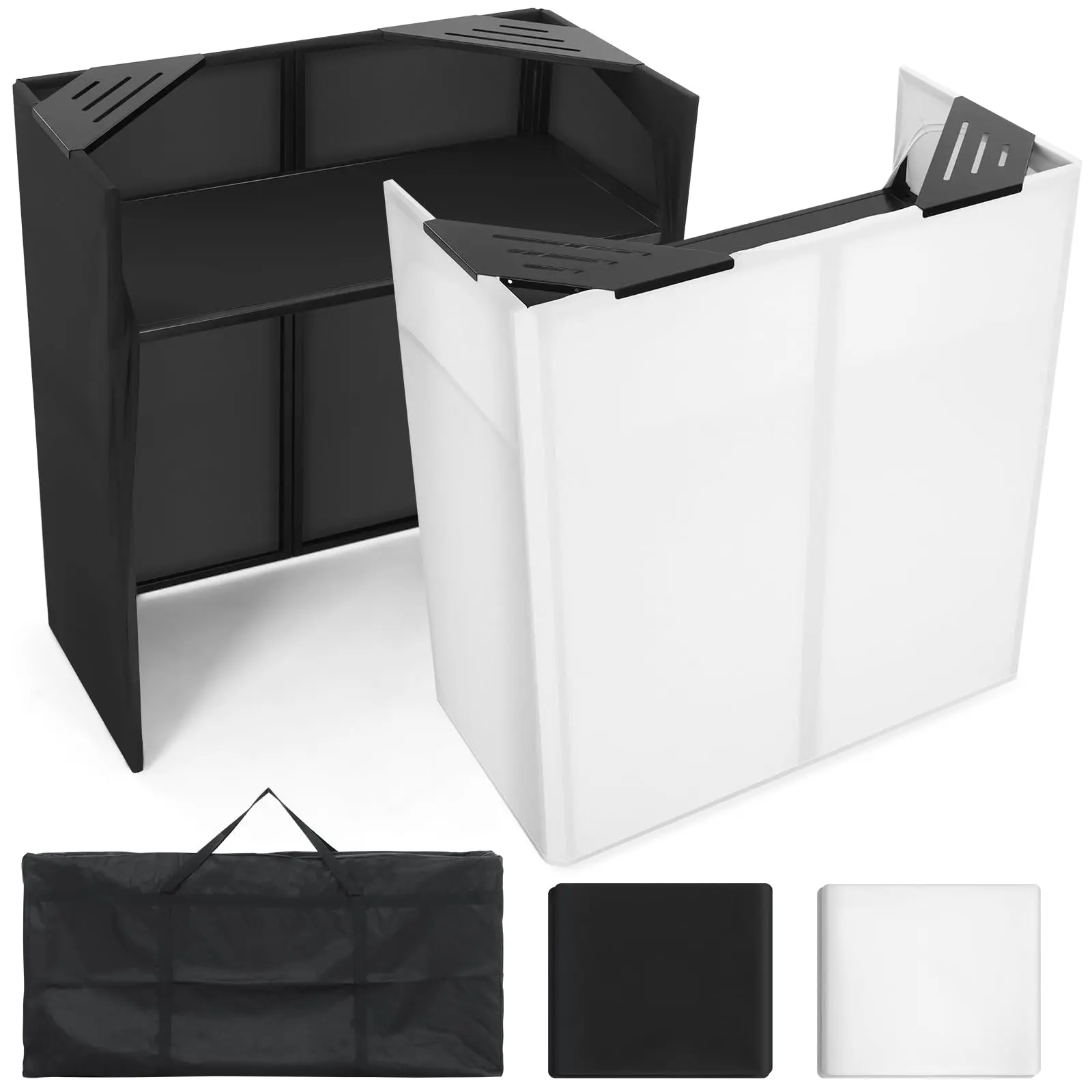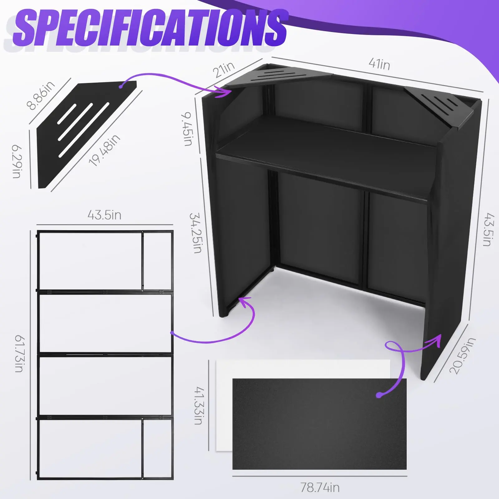 We listened to feedback from 90% of buyers in the market. As an event DJ, you often have to set up in areas with limited space. Whether it's a tight corner in a bar or a small office party, the footprint of your setup becomes crucial. This DJ table stand portable booth, measuring 40x20x45 inches, is perfect for those situations. The compact DJ stand booth design ensures you have everything you need in a limited space