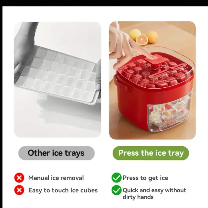 Portable Double-Layer Ice Cube Maker with Storage Box & Easy Press Lid - Manual Ice Tray for Home and Parties Red & Clear Options
