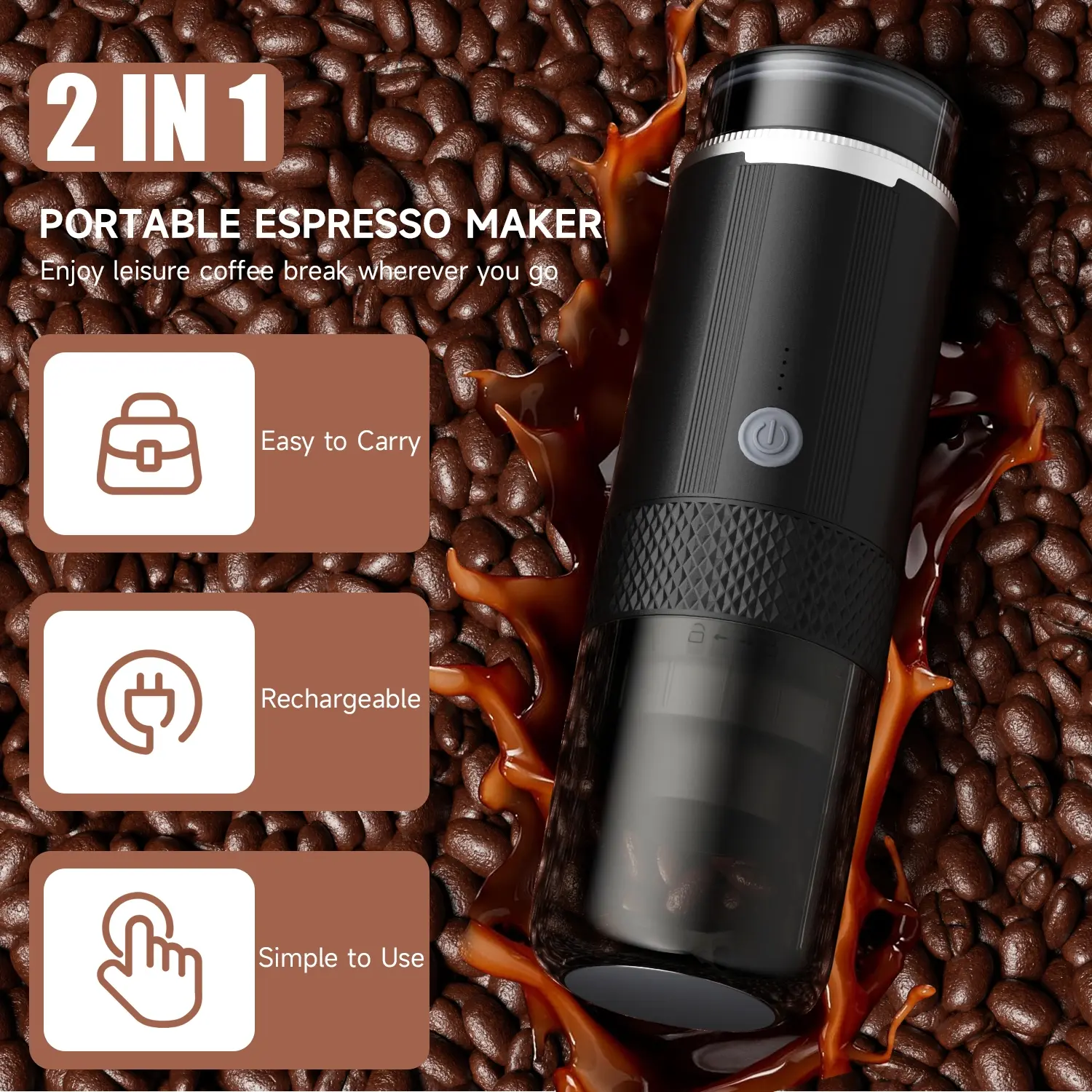 ·This USB travel espresso machine is cord-free and compatible with USB-C car chargers for universal charging