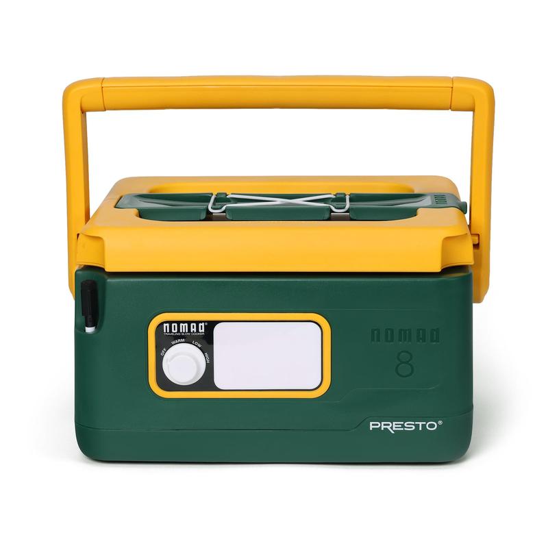 Elevate your on-the-go dining experience with the Presto Nomad Traveling Slow Cooker. This versatile 8-quart slow cooker is designed to accompany you on your culinary journeys, whether you're hosting a tailgate party, attending a potluck, or enjoying a family gathering.Staying organized on the go is a breeze with the Nomad's thoughtful features. Crafted with a unique design, the Nomad features the dry erase board and marker that let you label your dish or jot down a clever message, while the built-in cord storage and removable utensil holder keep everything tidy during transport.Prepare a variety of mouthwatering meals with ease, from hearty soups and stews to tender pulled pork and juicy chicken wings. Even less expensive cuts of meat will tenderize as they cook, transforming them into flavorful, fall-off-the-bone delights. The 8-quart capacity allows you to feed a group, making this slow cooker perfect for buffet-style servings.Enjoy the convenience of customizable cooking with the Nomad's slow cook settings for high, low, and keep warm. The large see-through glass window in the cover allows you to monitor the progress of your dish without lifting the lid and disrupting the cooking process. And cleanup is a breeze, too. The removable porcelain enameled cooking pot is fully immersible and removable, ensuring easy maintenance.Whether you're preparing a family-sized meal at home or catering to a crowd on the road, the Presto Nomad Traveling Slow Cooker is your reliable companion for delicious, effortless culinary adventures. Embrace the convenience and versatility of this exceptional slow cooker and elevate your on-the-go dining experience.