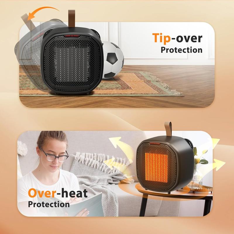 ·【Compact & Space-Saving Design】This mini desktop heater is ideal for small spaces like desks, offices, and bedrooms. Its sleek, compact design ensures it doesn’t take up much room while providing efficient heating where you need it most