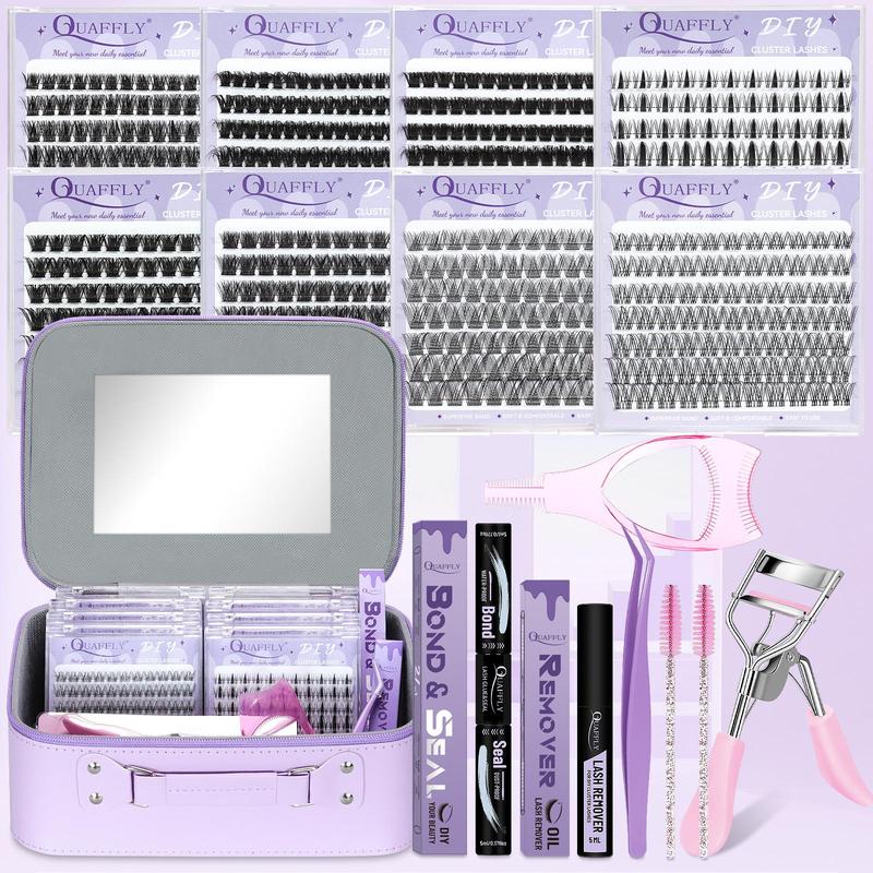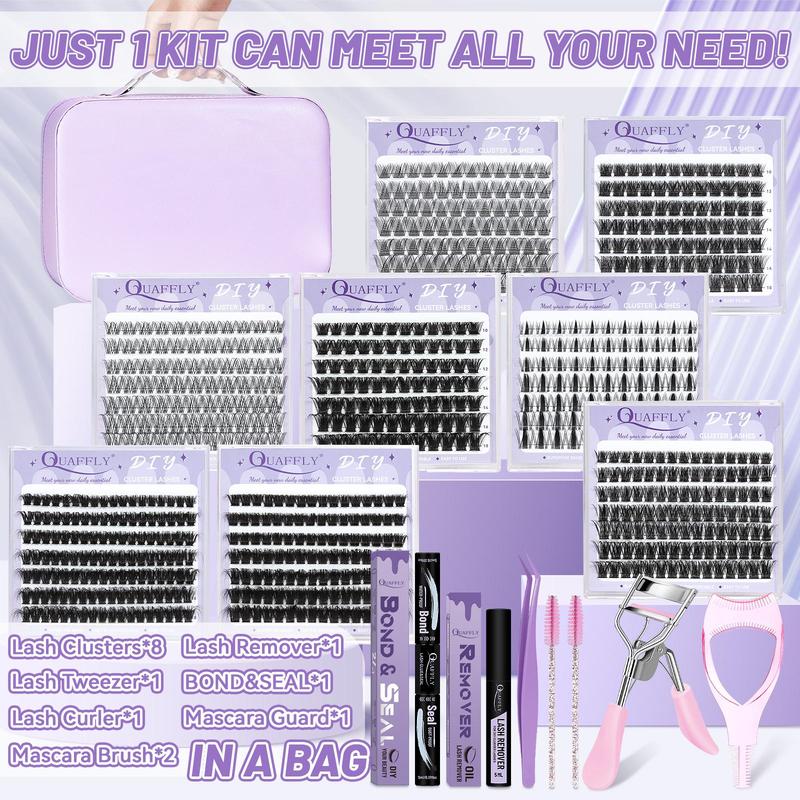 Portable Eyelash Kit, 1 Box Individual False Eyelashes with Eyelash Glue & Tweezers & Remover & Brushes & Eyelash Curler, Eye Makeup Enhancement Tool, Cosmetic, DIY Lash Cluster