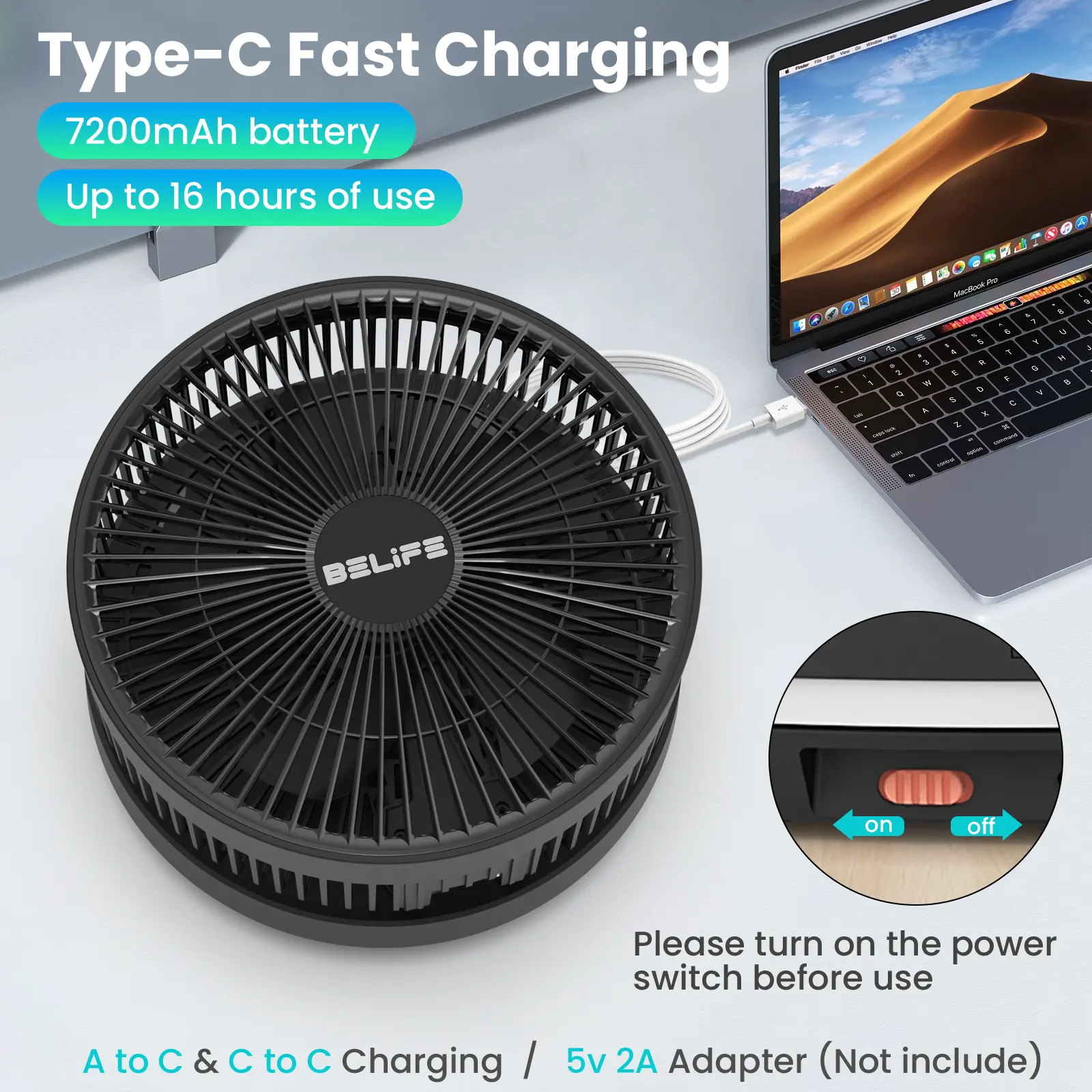 ·Detachable Clean & Anti-slip Silicone Pad: The fan cover is detachable for easy cleaning, and the base bottom is designed with anti-slip silicone pads, making the fan safer and more stable. Perfect for home, office, and outdoor use. Belife X10 portable fan is available in stylish black, white, and navy colors. It is the optimal option for summer gifts; its practicality could pleasantly surprise your family and friends.