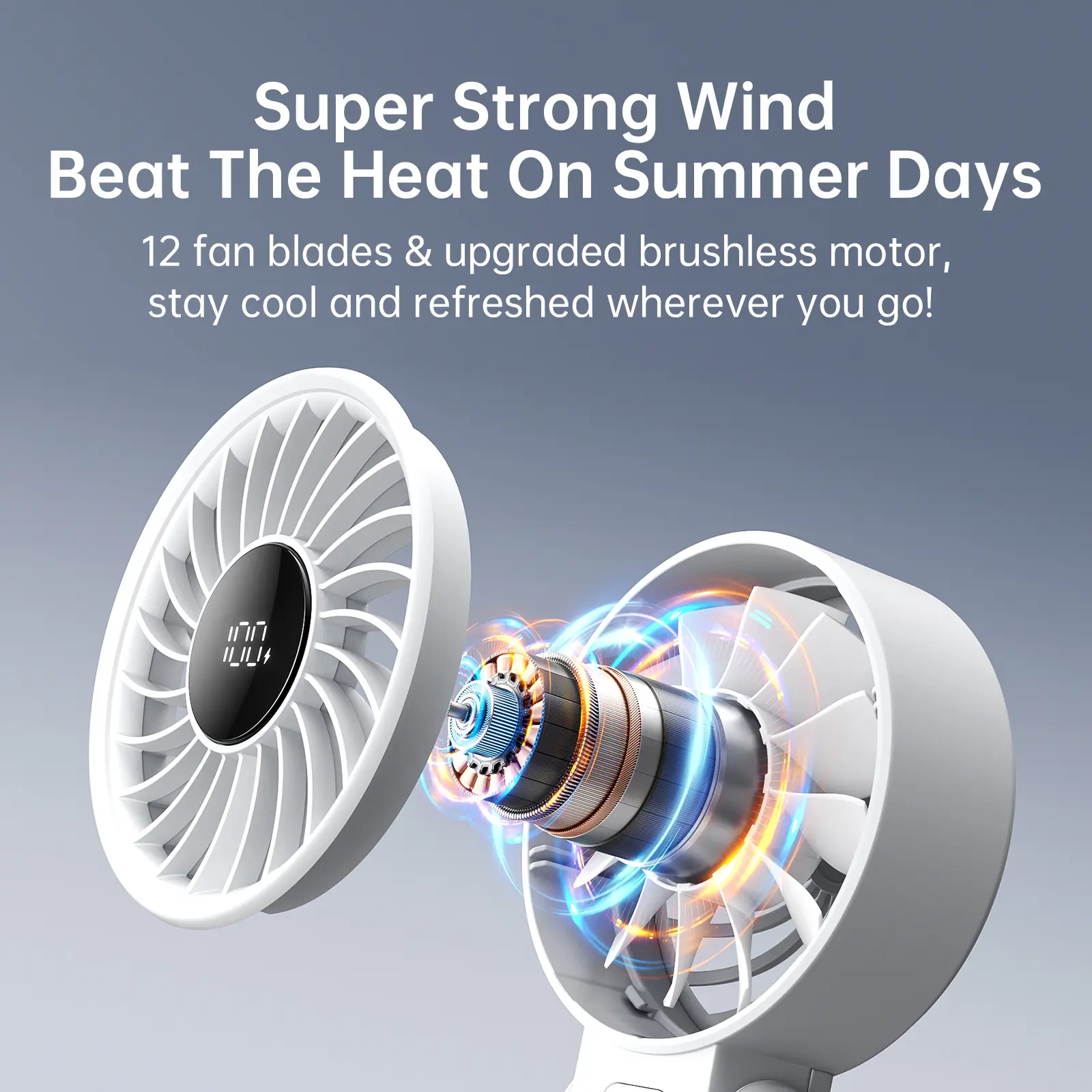 ·Powerful Mini Fan: With a 12-blade design and an upgraded brushless motor, it delivers a strong, cooling breeze.