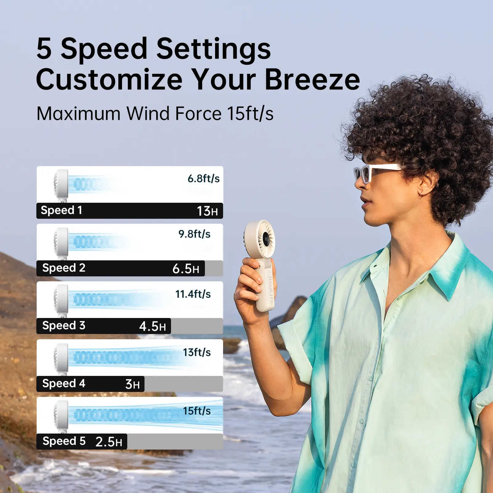 ·5 Adjustable Wind Speeds: Cater to your personal cooling needs.
