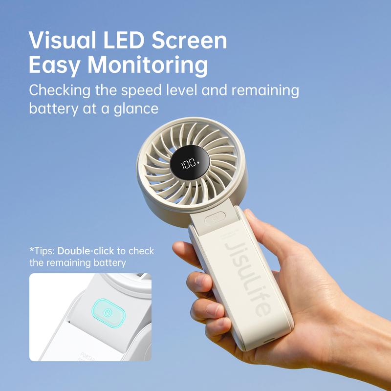 The JISULIFE Portable Folded Fan is a versatile and powerful cooling solution for summer days, travel, concerts, and outdoor activities. With its adjustable wind speeds, long-lasting battery, and comfortable grip, it's a must-have for anyone looking to stay cool.