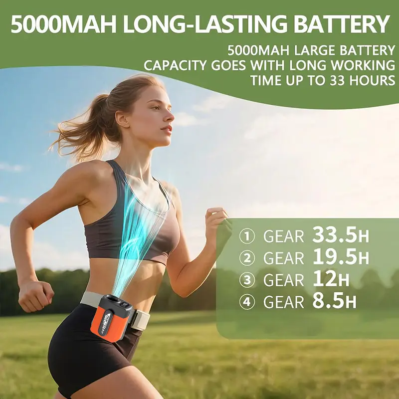 ·Powerful Cooling on the Go: This 5000mAh USB rechargeable waist fan offers 4 powerful wind speeds and 6000RPM airflow. Perfect for hands-free cooling, it's ideal for outdoor travel and camping. 🌞