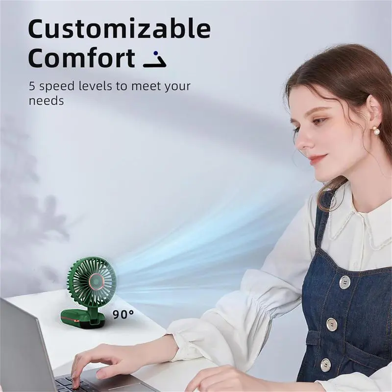 【5 Speed & Strong Wind Power】mini fan is equipped with upgraded brushless motor drive, powerful and windy to meet your quick cooling in hot summer. With five speeds, you can customize the wind speed according to your different needs, easy to use