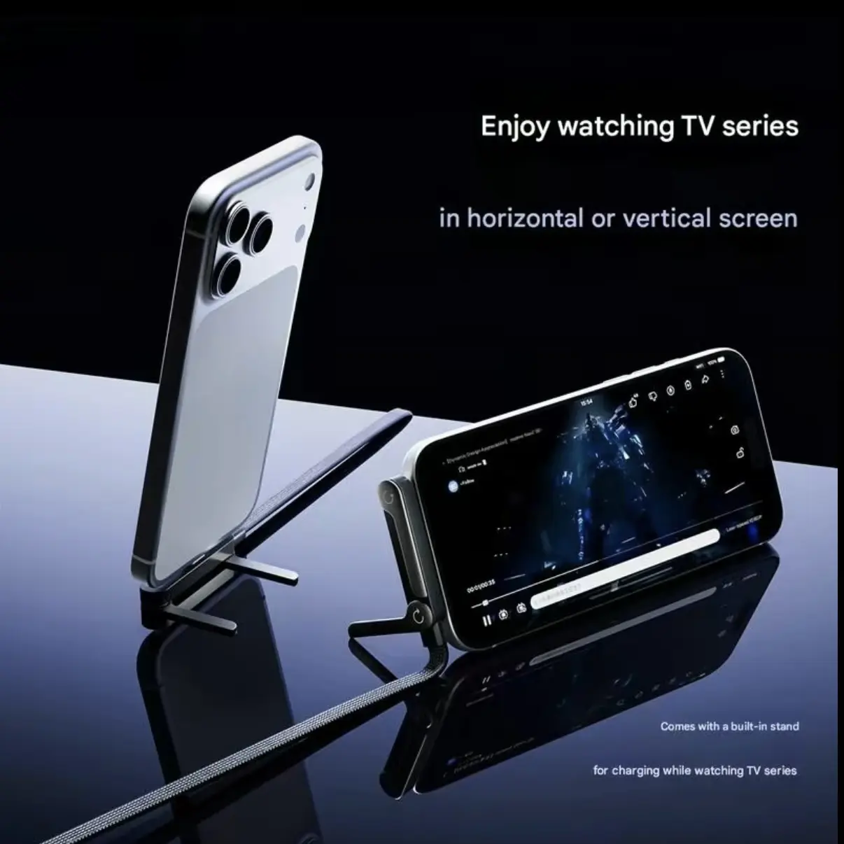 Outdoor mobile portable indoor travel tool 240W fast charging data cable | Woven material, foldable stand, black - Dual-purpose fast charging cable for phone charging and desktop video viewing, Type-C to Type-C, USB-C interface type