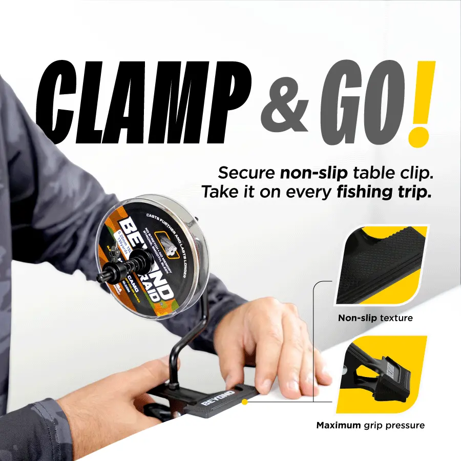 SET IT UP ANYWHERE, BOAT, GARAGE, OR SHORE SIDE - Mount it to your rod or clamp it to any flat surface. Featuring a sturdy, anti-slip design, this reel spooler is ready wherever you are. Whether you’re prepping for a trip or mid-session, you’ll spool like a pro on the go.