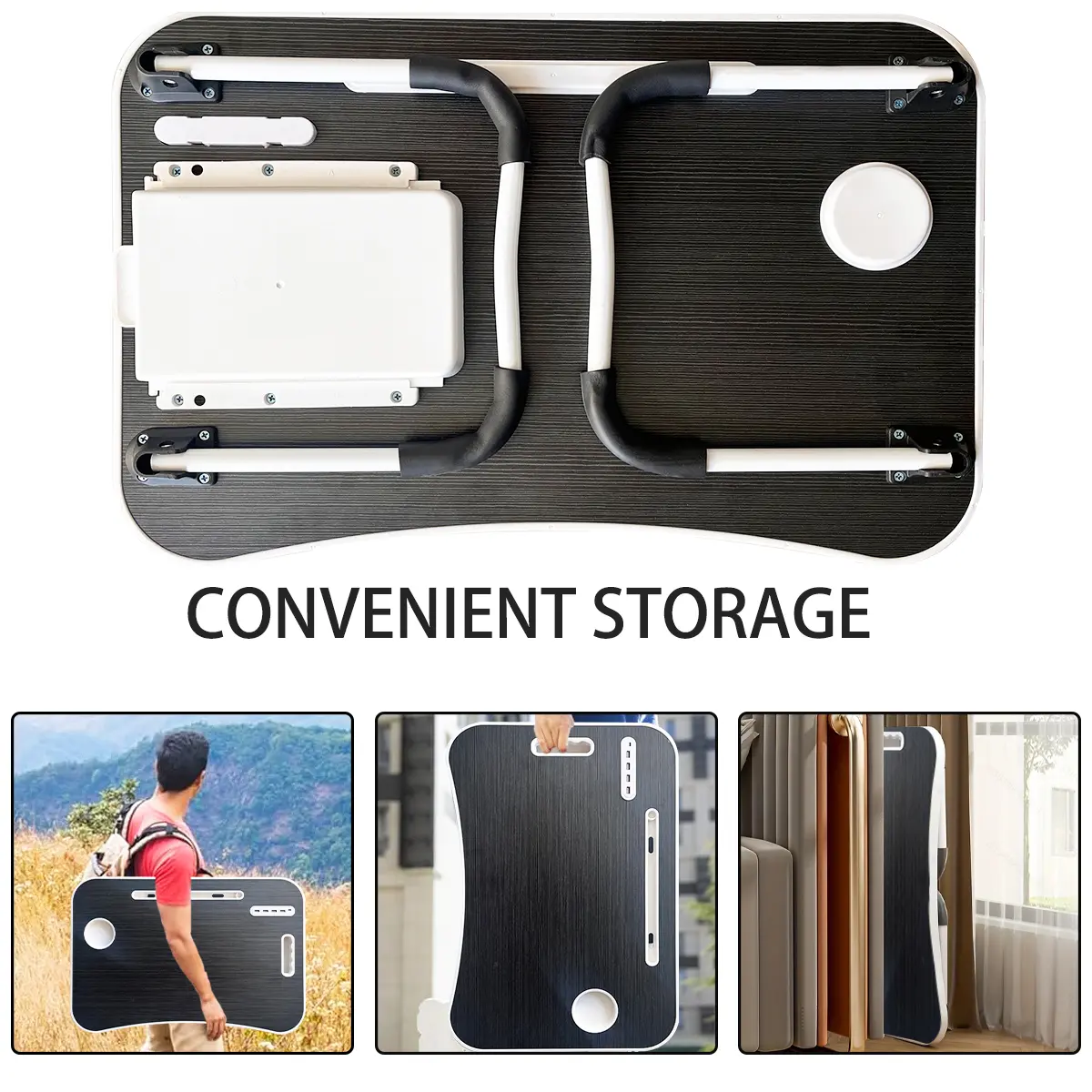 ·The foldable lap desk includes a cup holder to prevent spills. It also has a storage drawer for small items. This multifunctional table is perfect for office or home use.