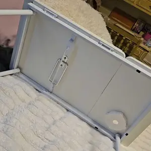 ·Made of durable wood, safe and environmentally friendly. The tray is non-toxic, moisture-proof, scratch-resistant, and high-temperature resistant. The metal legs have good stability and durability with 4 non-slip pads.