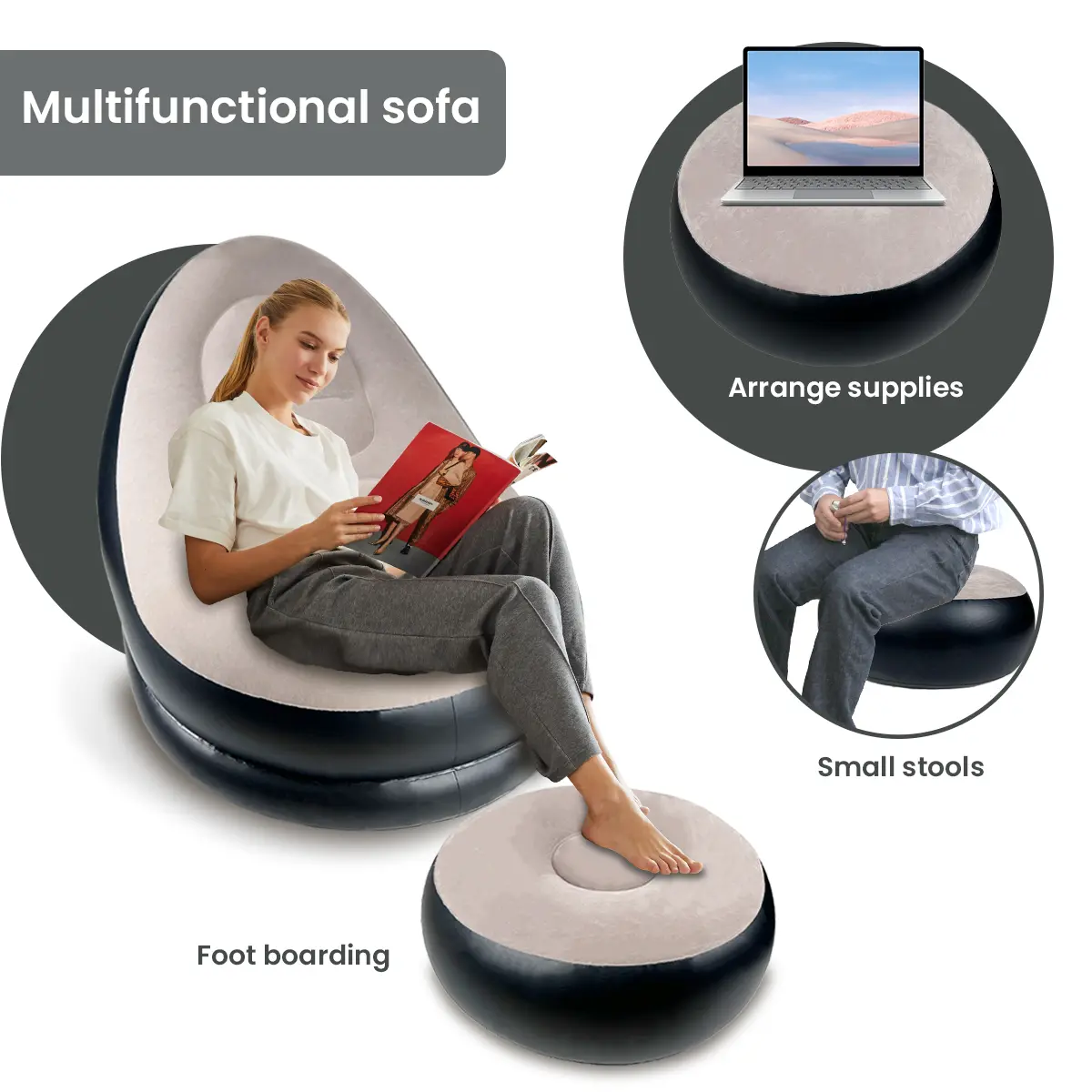 I was surprised with how comfortable the sofa chair was. They include a small air pump that I believe would’ve taken forever to blow up both Pieces, I just instead decided to blow them up by mouth instead, which was not difficult or time-consuming. I fell asleep, the first time using it 😍