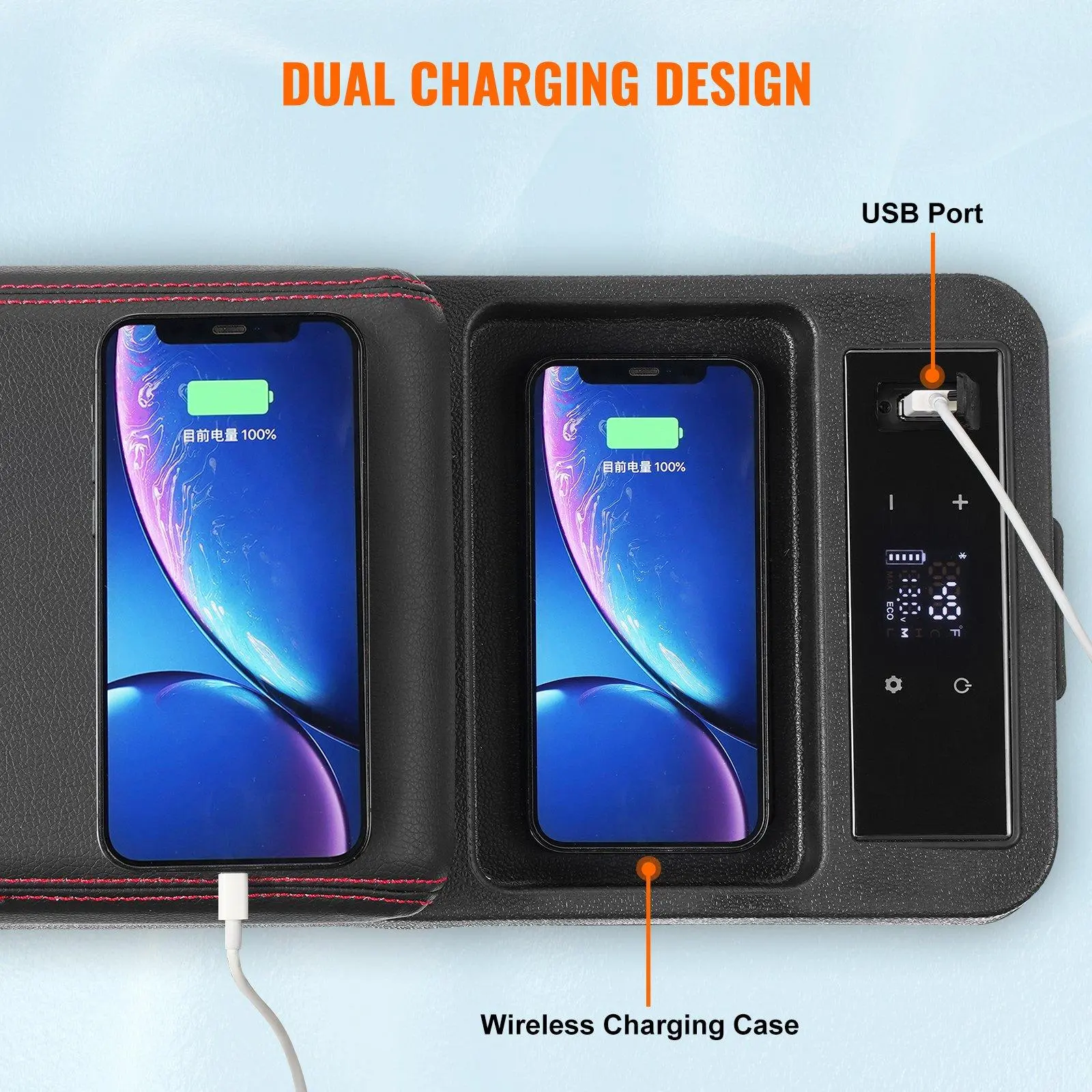 ·Armrest Car Refrigerator: The car fridge is equipped with dual charging functionality, USB connection, and wireless phone charging. The leather material handle showcases quality and can be used in your car, allowing you to enjoy the journey more.