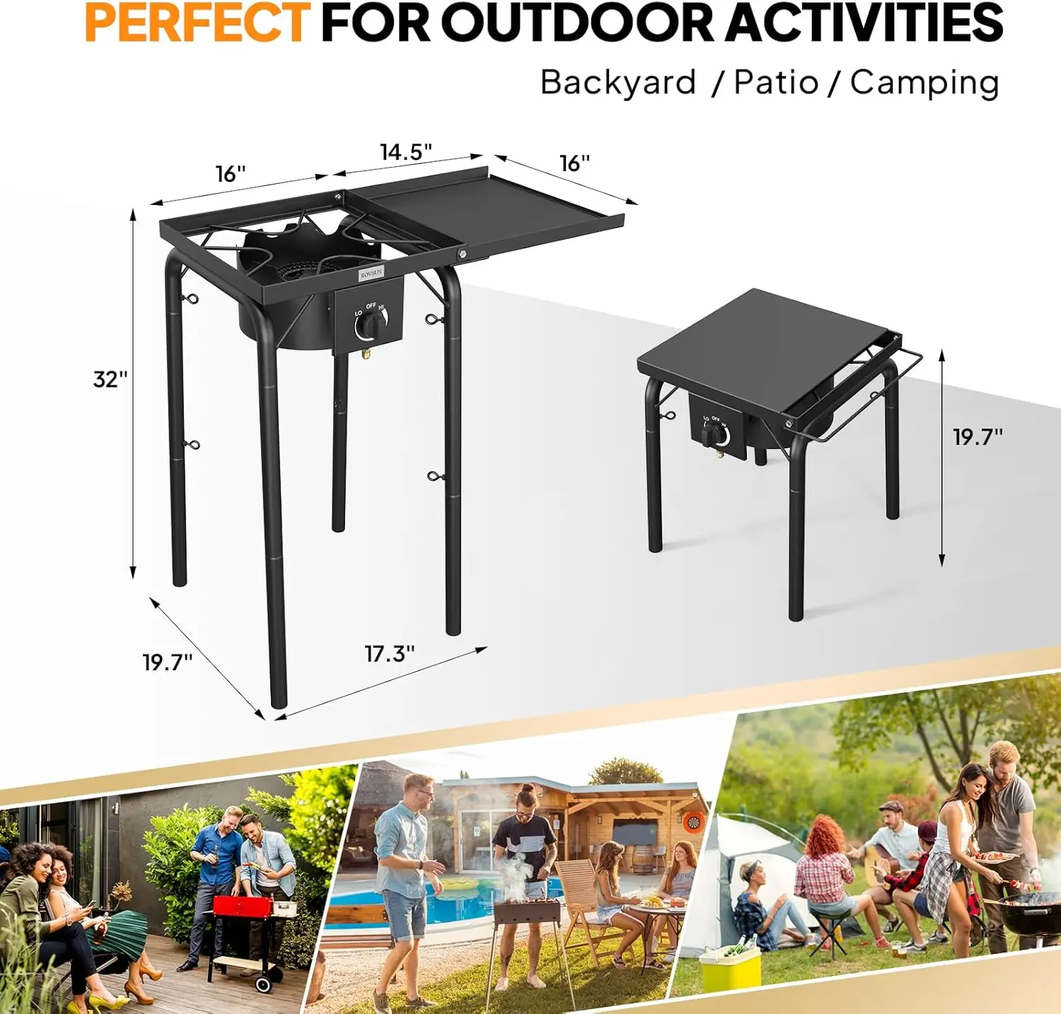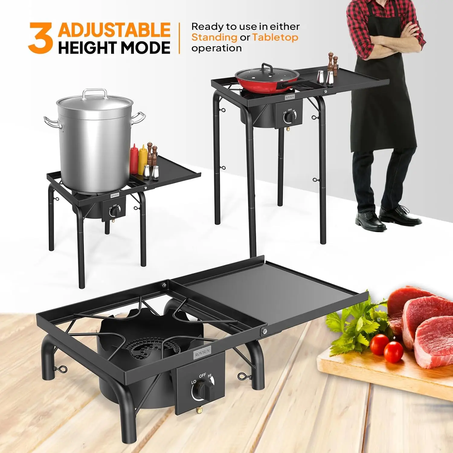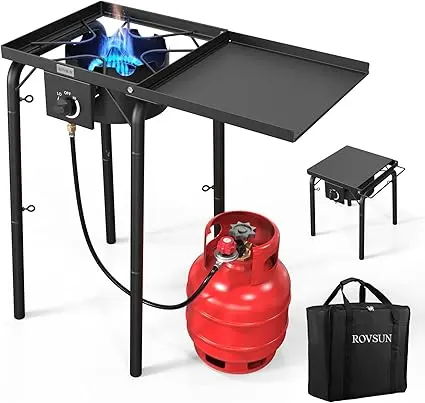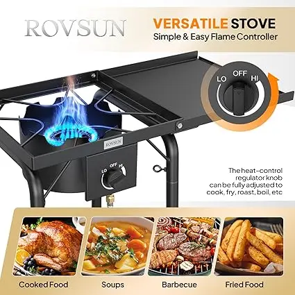 The ROVSUN stove delivers robust heat, ideal for outdoor cooking. Fry outside without mess or greasy smells. Perfect for crawfish boils, lobster steaming, or deep-fried turkeys. This versatile burner ensures family meals are enjoyable.