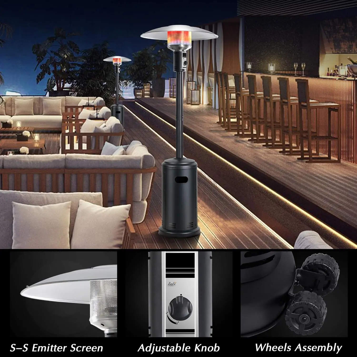 ·Easy Matching Appearance: Easy Matching Appearance Design of hammer tone and popular bronze from tall standing patio heater can match different outdoor design.