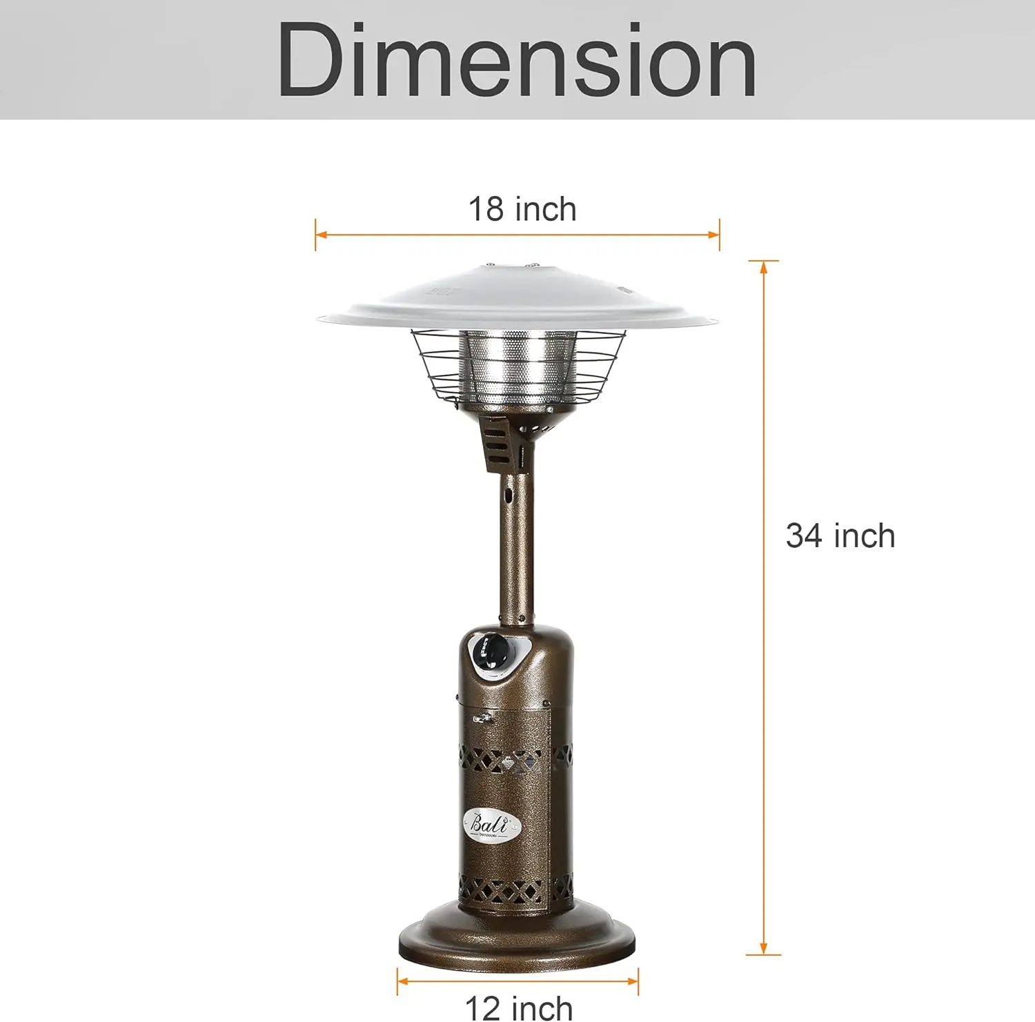 ·Portable Design: Propane tabletop heater uses 1lb propane tank (Not included), its weight only is 14 lb, approximate assembled dimensions: 34 in H x 20 in Dia. Its effect of exterior design cabinet and delicate, easy to carry.