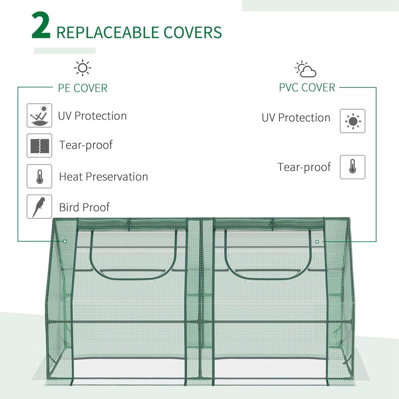 Double Protection: The 140 GSM PE cover on this tent greenhouse maintains high humidity levels and protects plants from UV scorching while letting 85% of nourishing sunlight through. You can use a single cover during the warmer months and add the second once it starts getting colder to protect your plants.