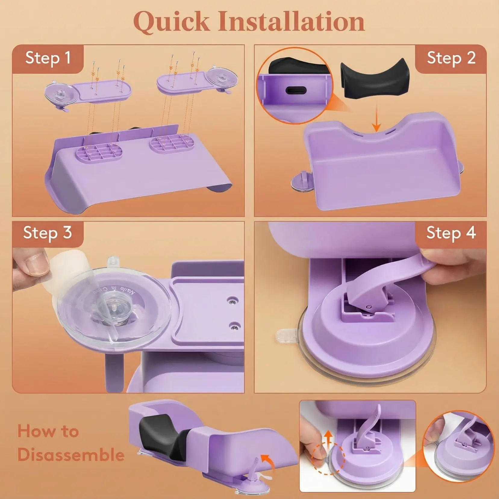Great product! The suction is very strong so you don’t have to worry about it moving while you are using it. It allows you to wash the back of the head without getting water everywhere.