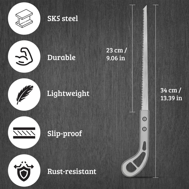 Plastic printed handle makes this mini saw seem flimsy, but I already cut about 40 small to medium branches with clean cuts