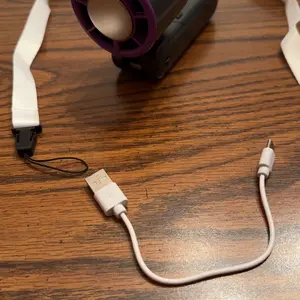 Its cute and it really does get very cold. It came with the charger cord only no port. It also included a cord to wear hands free. Shipping was fast. Really would have liked to have it in pink. Thanks Tiktok