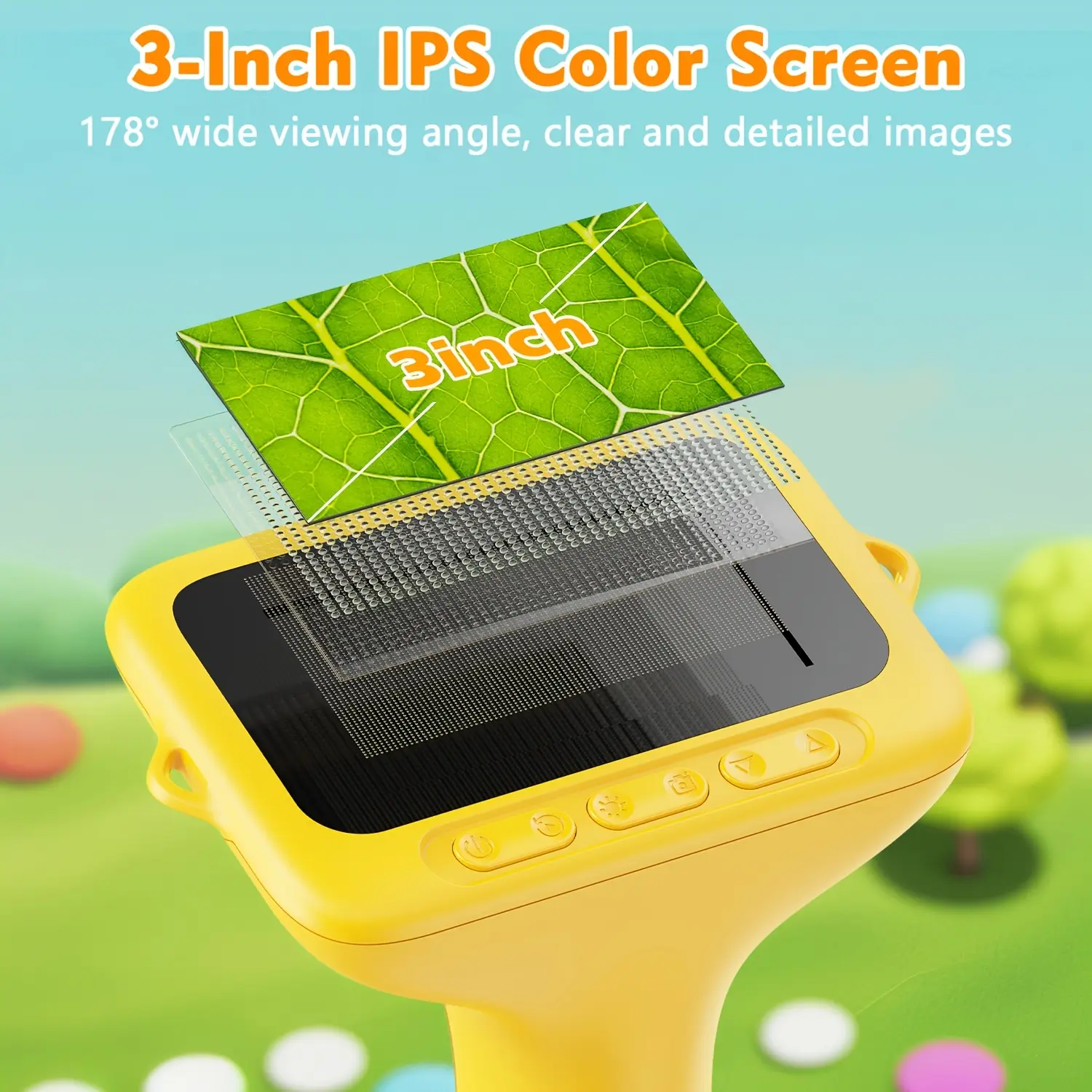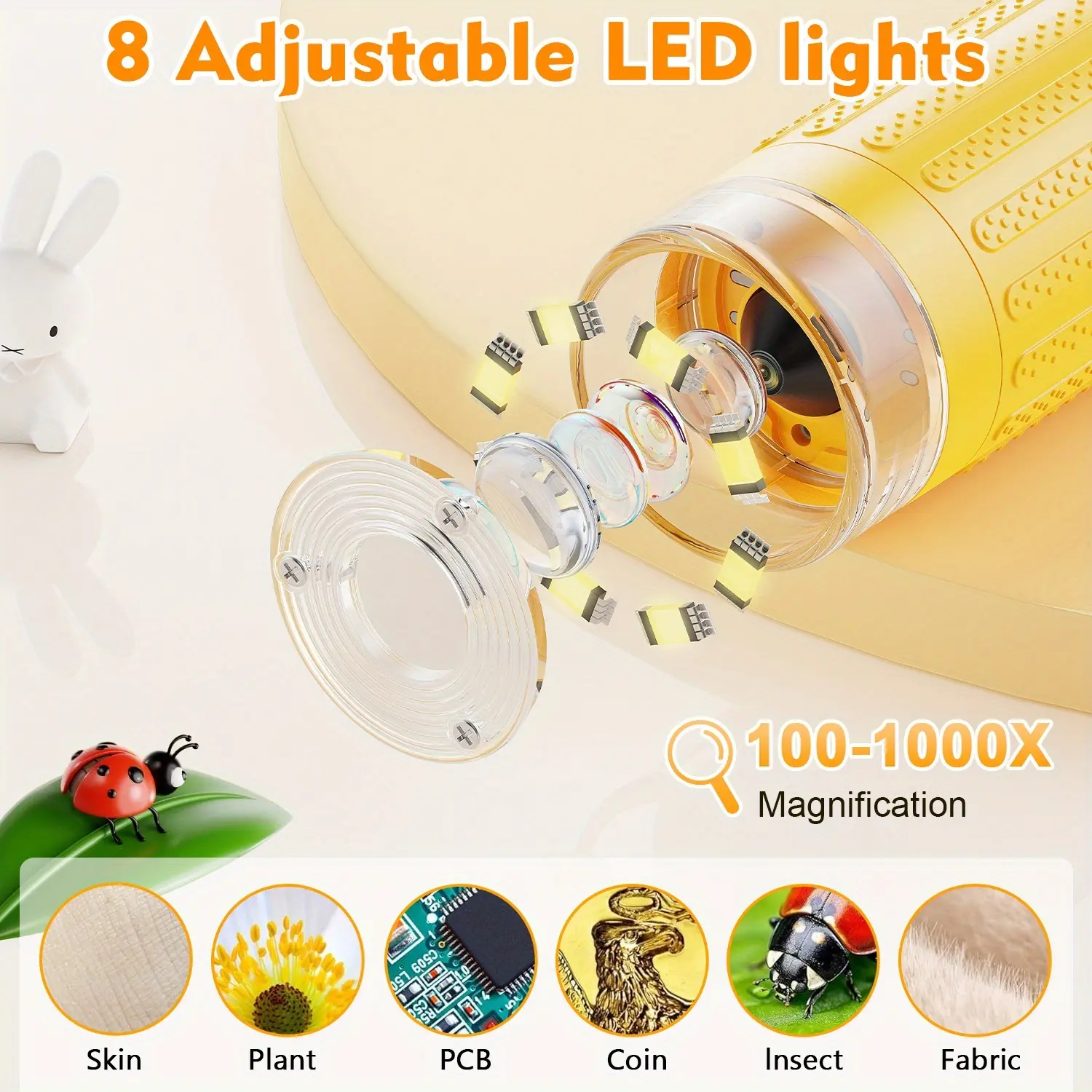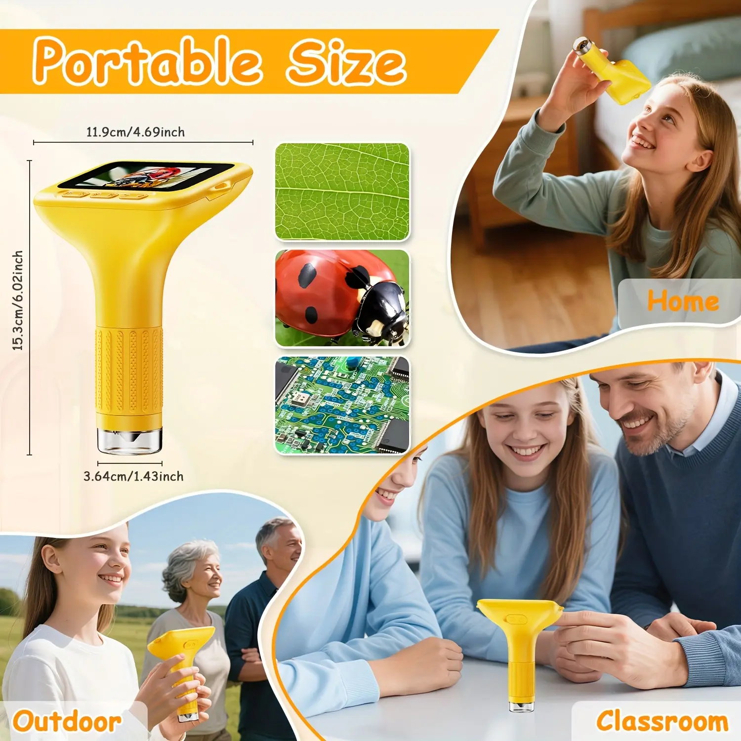 Portable Microscope, Handheld Digital Microscope with 8 Adjustable LED Lights, IPS Screen Electronic Magnifier, Suitable for Children and Adults, LCD Digital Microscope