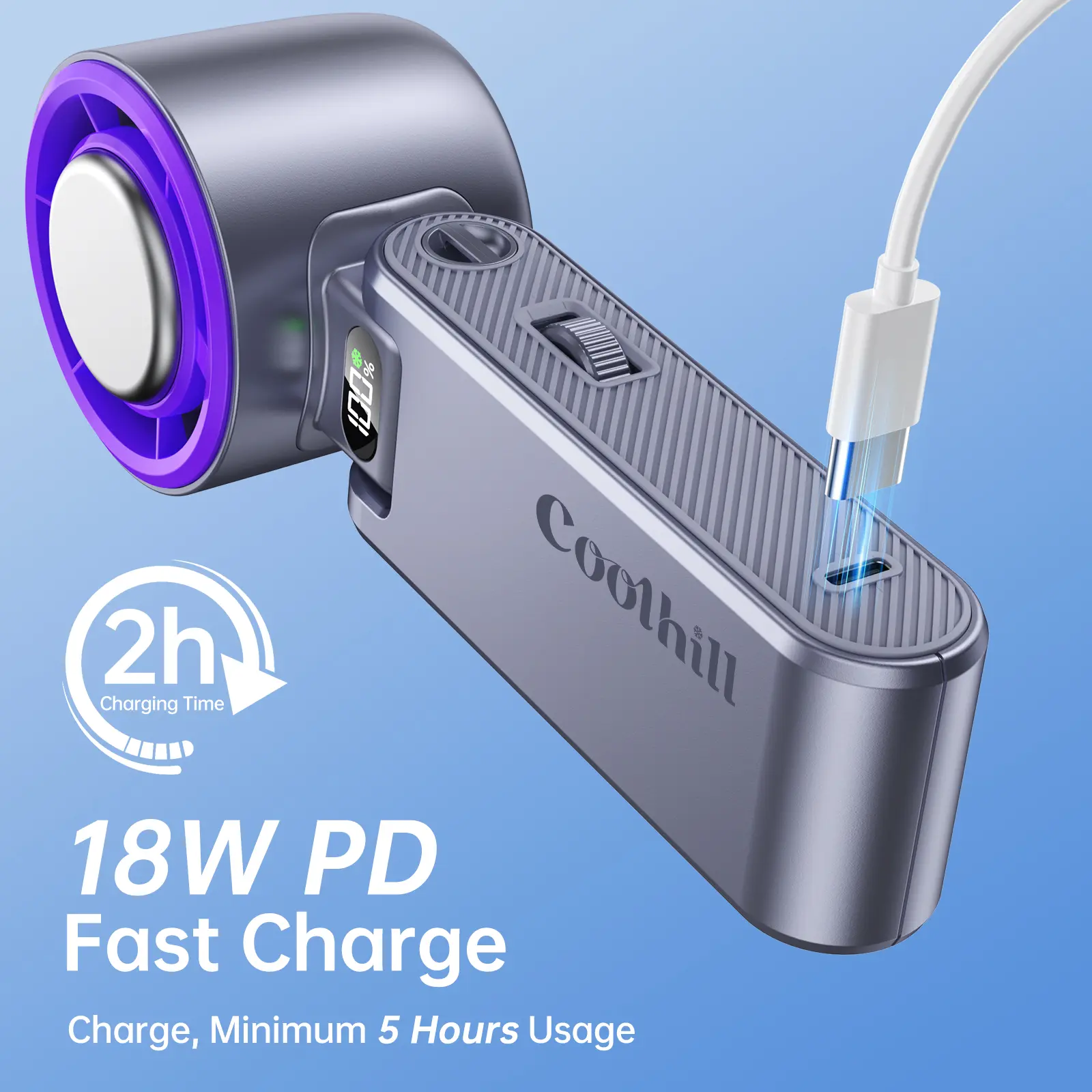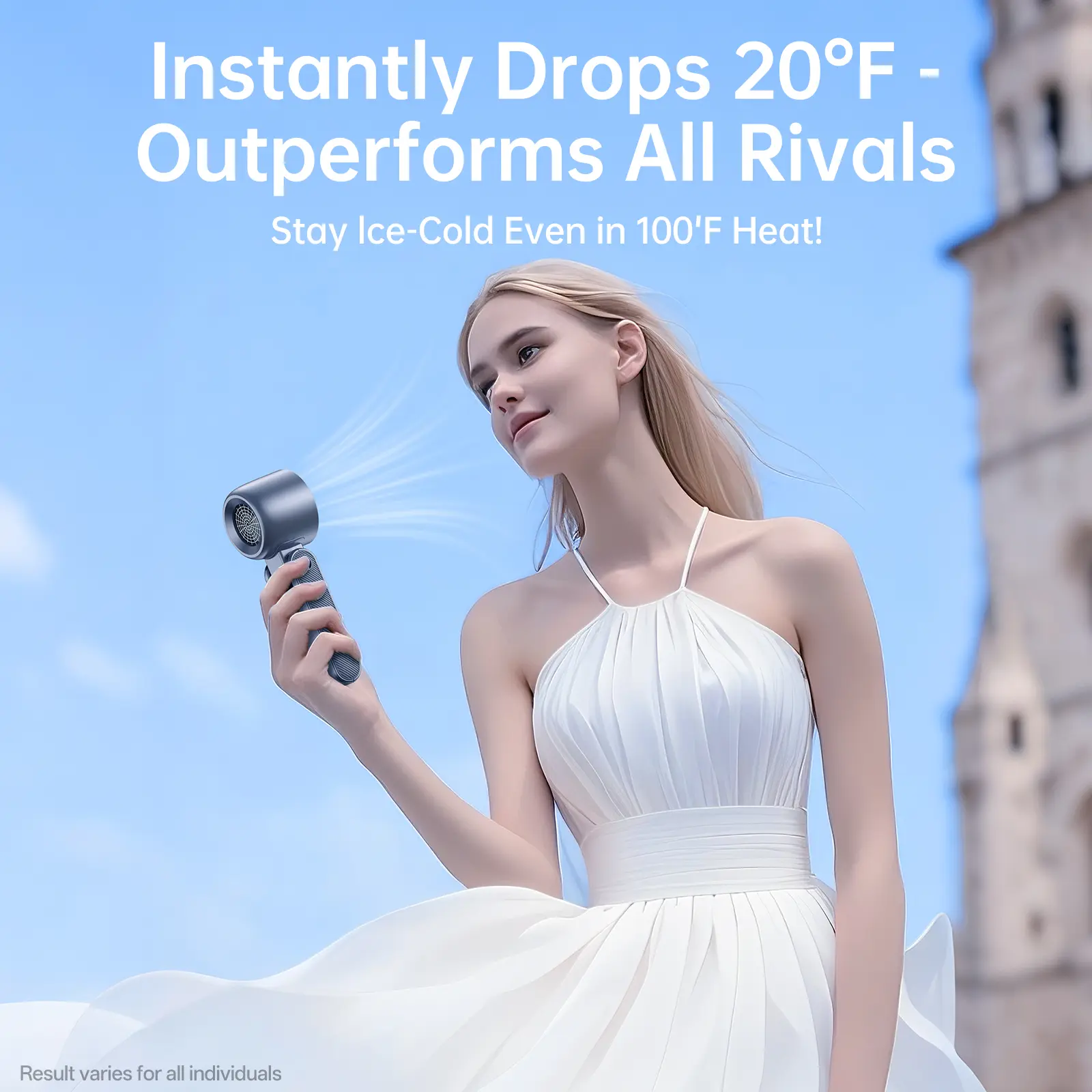 ·Powerful Cold Wind : The portable fan uses a turbine engine and large-diameter turbine blades, with a mini fan speed of up to 13000 RPM. The two-way circulation air duct and 180°wide-angle airflow design make the cold wind cover a wider range. The handheld fanâs super cooling effect allows you to quickly cool down during summer travel, hot outdoor camping, and sports and fitness, and enjoy a personal oasis!