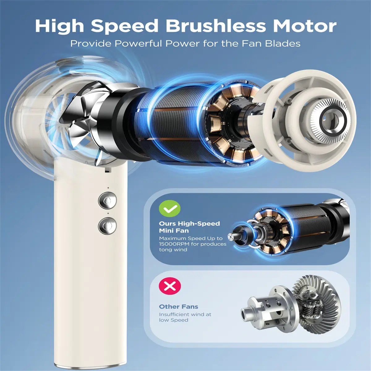 Discover the perfect blend of convenience and performance with our Portable Fan Handheld Mini Fan. This high-speed cooling fan is designed to keep your space cool while you're on the go.