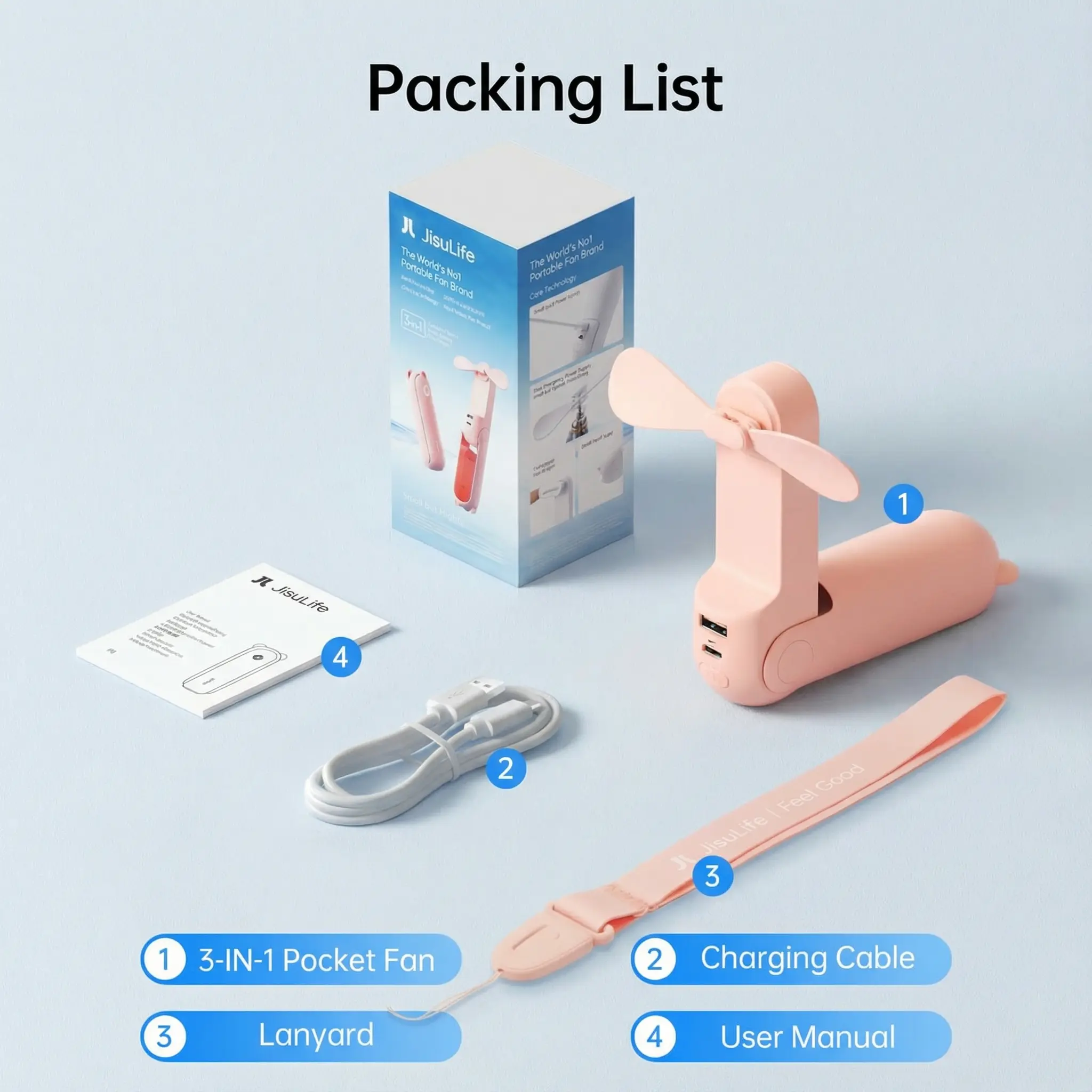 Conclusion 🌟The JISULIFE Handheld Mini Fan is a versatile and multifunctional portable fan with a USB power bank and flashlight. It offers long battery life and is perfect for various uses, including travel, concerts, makeup, eyelash application, commuting, weddings, camping, home, office, and school. It is also an ideal gift for various occasions.