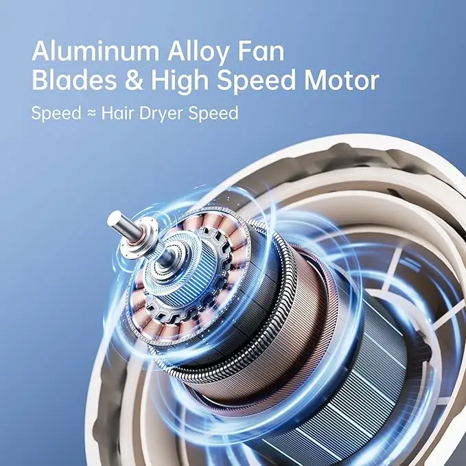 The JISULIFE Portable Handheld Turbo Fan offers 100 speed settings for personalized cooling. Perfect for any environment, it ensures you stay comfortable. The fan's powerful cooling solution makes it an ideal choice for both travel and home use. Stay cool and comfortable wherever you go.