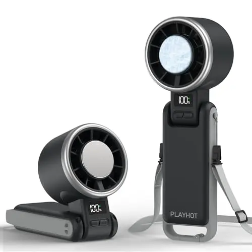 Stay cool on the go with this rechargeable personal fan. It offers up to 12 hours of cooling, making it perfect for travel, outdoor activities, camping, and hiking. The fan features 5 speed settings and operates at an impressive 25550 RPM. Ideal for those who need a powerful portable fan.