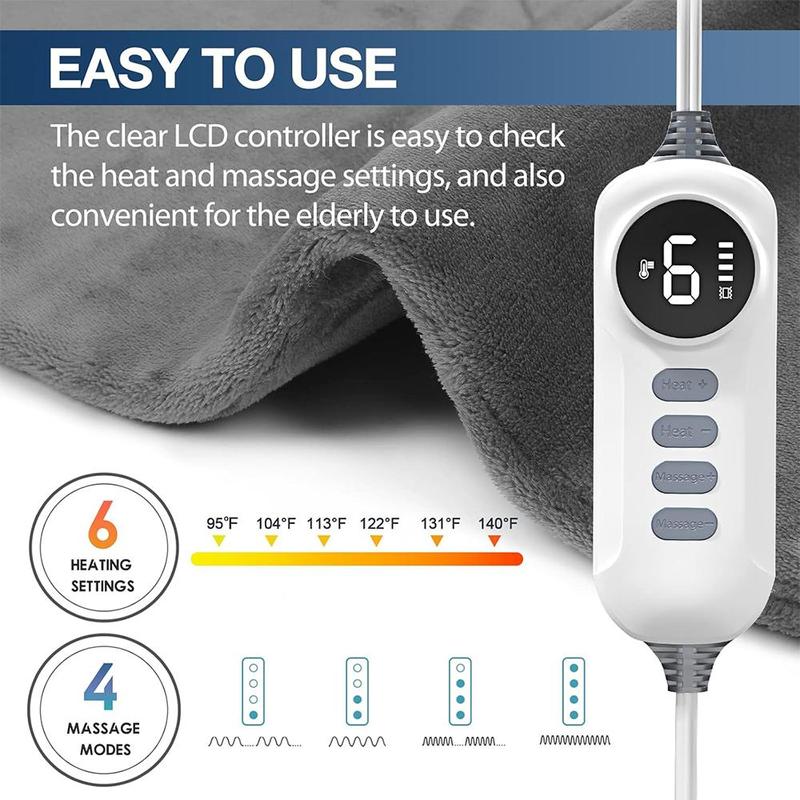 Conclusion:The DAILYLIFE Portable Heated Massage Shawl IPX-0 offers versatile comfort with 24 massage combinations, 6 heat settings, and 4 vibration modes. It ensures safety with an automatic 2-hour timer and is machine washable for easy care. Perfect for women, mom, or as a gift for special occasions.