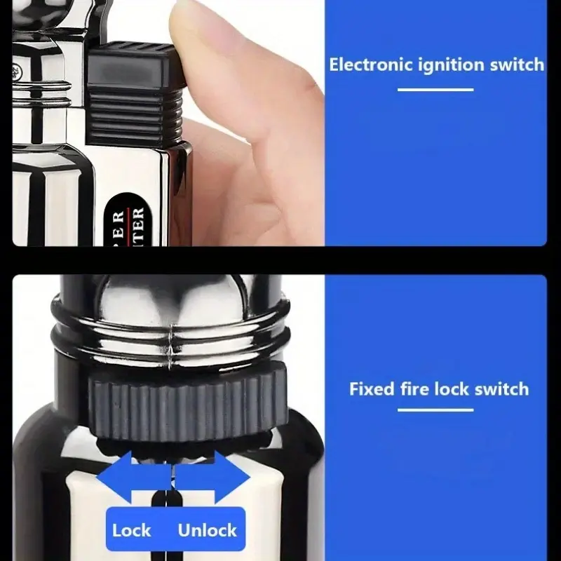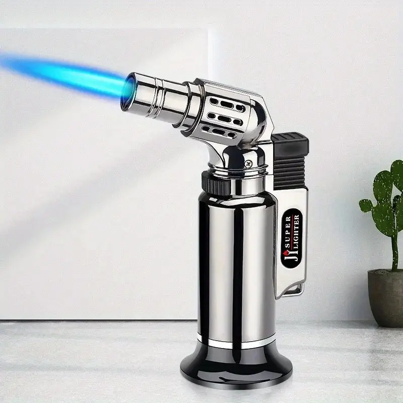 Portable High Fire Metal Lighter, with Safety Lock & Adjustable Flame, Multifunctional Kitchen Barbecue Cigar Lighter, Outdoor Windproof Turbine Gas Lighter, Men'S Gifts (No Gas), Without Battery