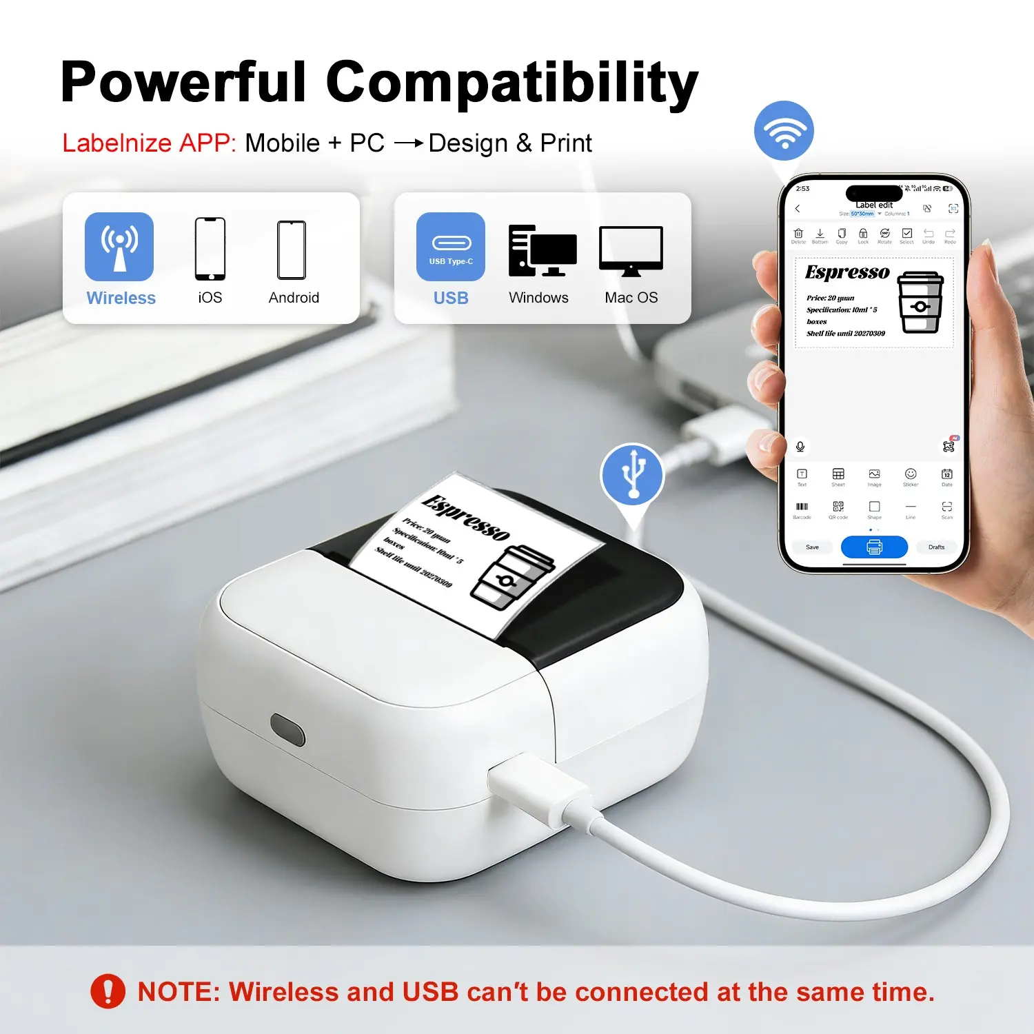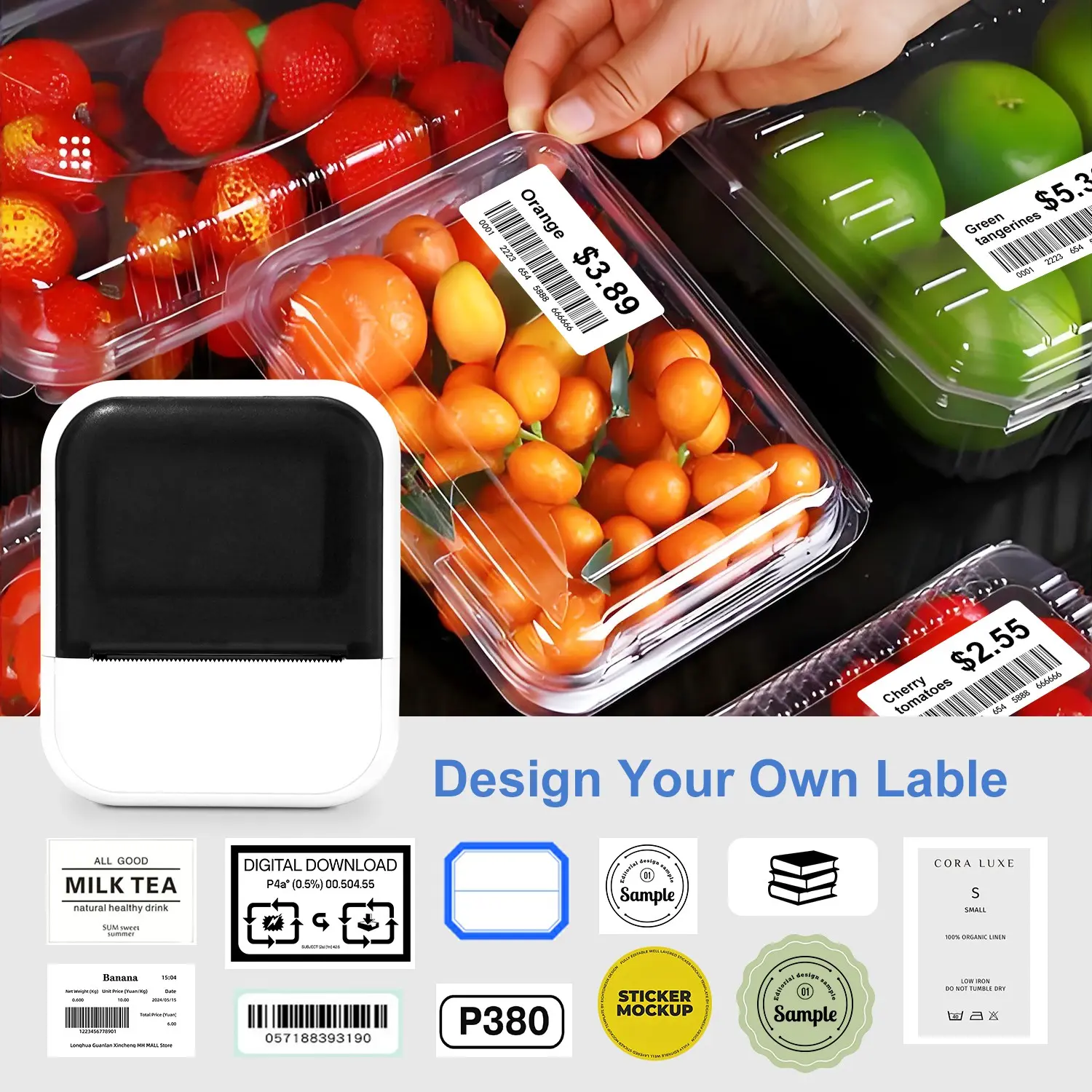 Portable Inkless Thermal Label Printer, Bluetooth-compatible Mini Label Maker for Small Business, Price Tags & Home Organization, Tattoo Design Printing