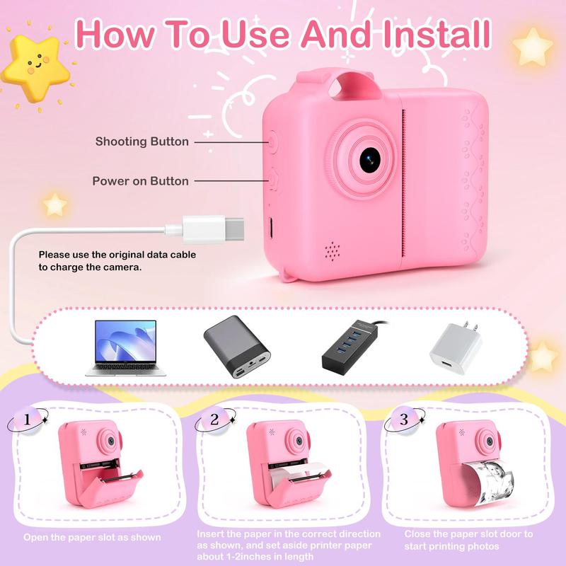 Portable Instant Print Camera with 3 Rolls Print Paper, Ideal Birthday Gifts for Boys & Girls,Boys & Men gifts, Photo Camera